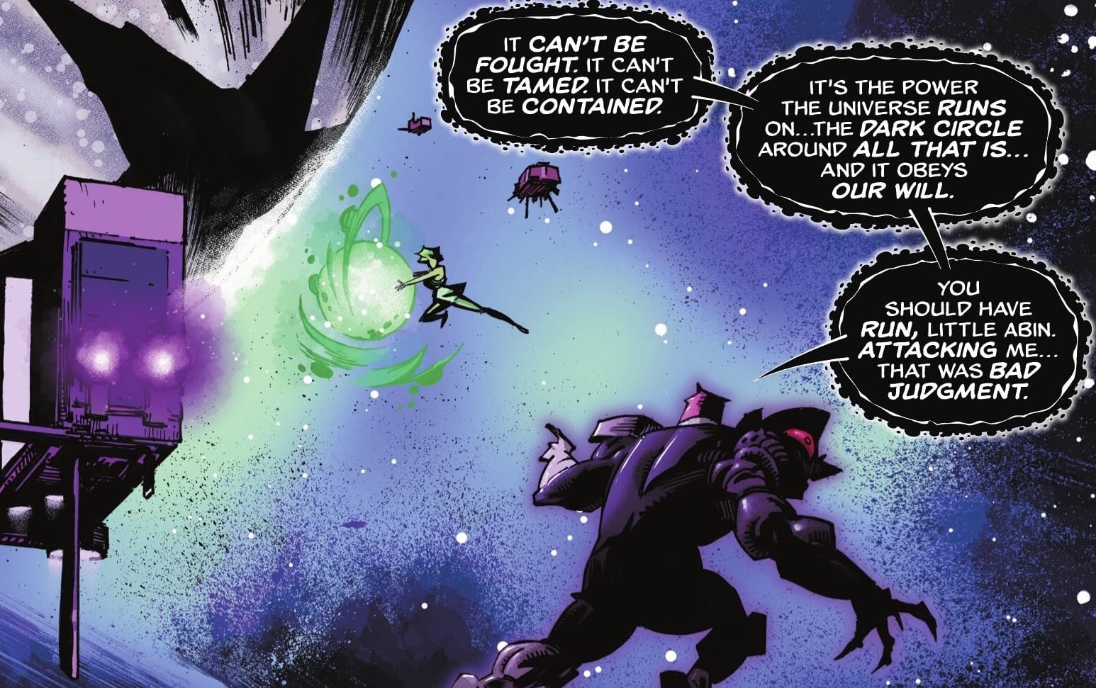 …to somewhere so large in Absolute Green Lantern #7. Where we learn that the power of the universe runs on the dark circle, controlled by will. And back on Earth the Absolute Joker has something to share in that regard.