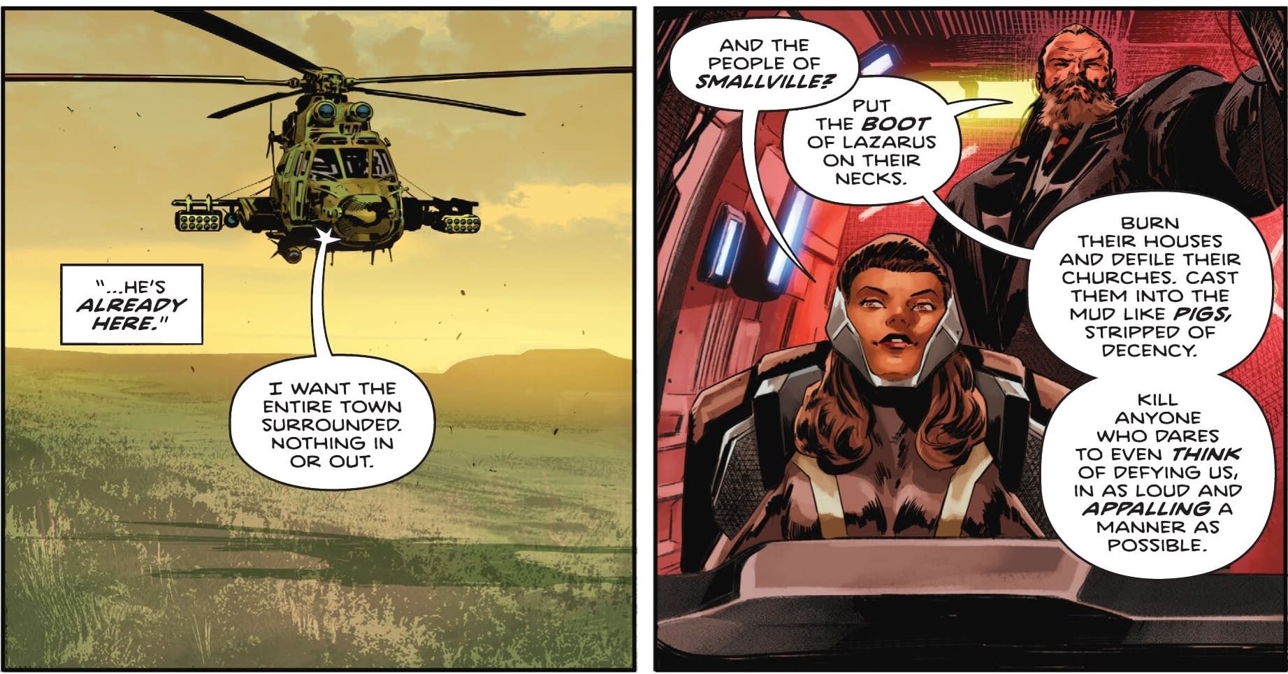 No one defies the will of Ra's al Ghul. If Superman doesn't accept his place as the Son of the Demon, then Lazarus Corp will rain hell on the people most precious to Kal-El…the people of Smallville. So begins the invasion of Kansas!