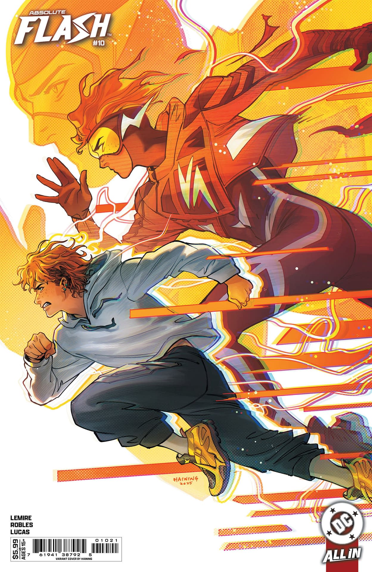 - Cover image for 1025DC0069 Absolute Flash #10 Haining Cover, by (W) Jeff Lemire (A) Nick Robles (CA) Haining, in stores Wednesday, December 17, 2025 from DC Comics