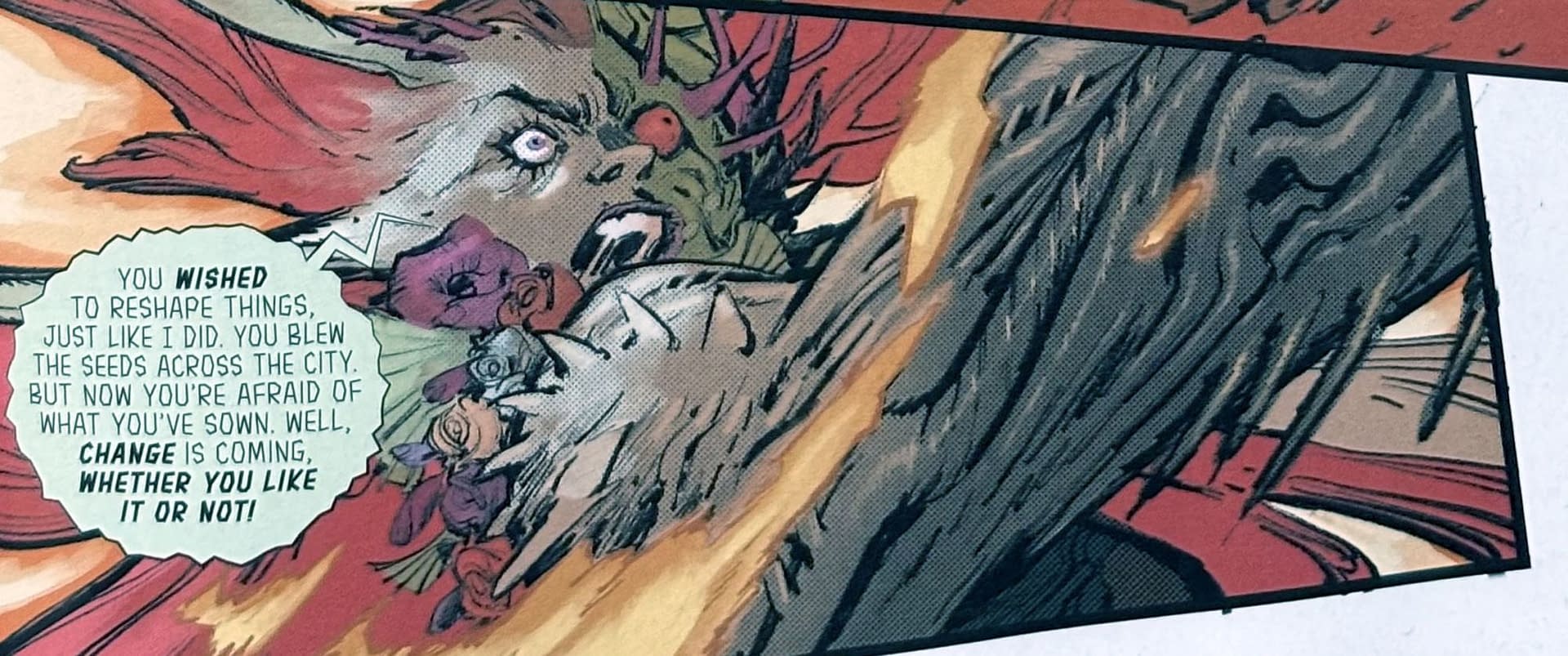 But with Poison Ivy, that means changing everyone in Gotham into a monster to take on the Joker. And there are no backsies. But Bruce Wayne gets her back story, and makes a… deduction.