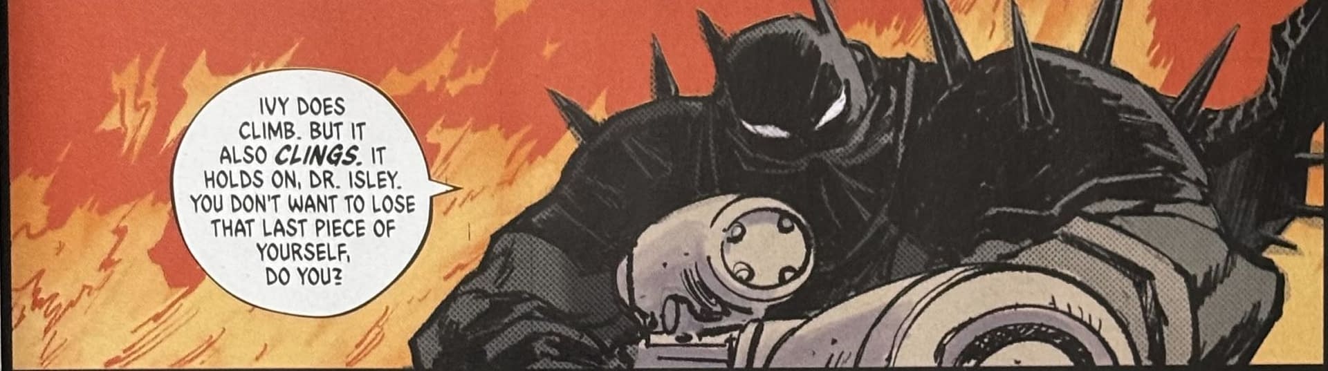 Is this Pamela Isley that the Absolute Batman is talking to? Or the reader? Or Scott himself? What is it we cling to when reading these Absolute takes on classic characters, recreated for a new world but clinging on to so much of the past that created it?