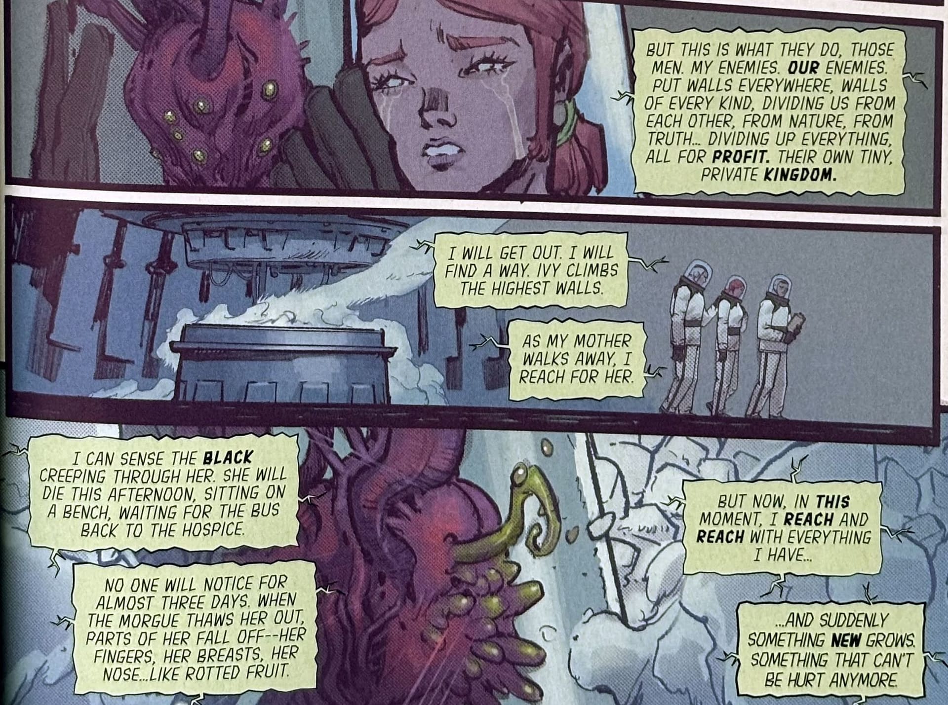 A sick mother, a reference to what another Poison Ivy and why this one is different. And why the Absolute Universe, the pathology of Darkseid that infects it, drives this Pamela Isley, well, up the wall…
