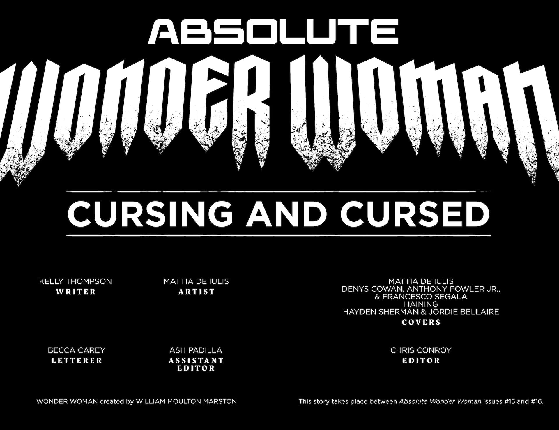 - Interior preview page from 1225DC0082 Absolute Wonder Woman 2026 Annual #1 Cover, by (W) Kelly Thompson (A/CA) Mattia De Iulis, in stores Wednesday, February 11, 2026 from DC Comics