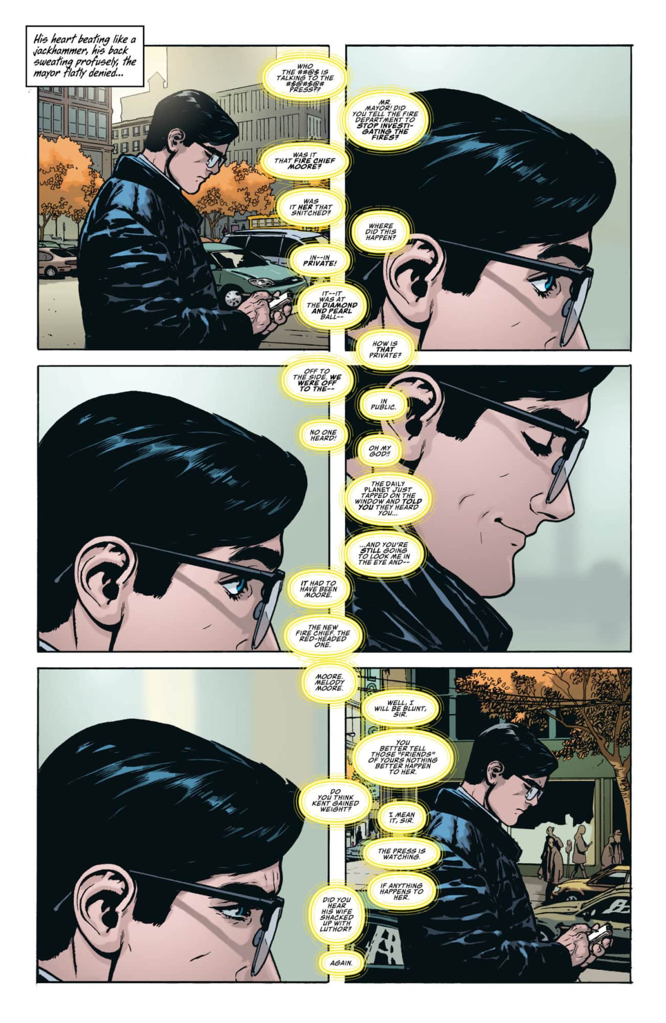 Clark Kent doorstepping the Mayor of Metropolis, with a mayoral aide painfully getting in the way of Kent…