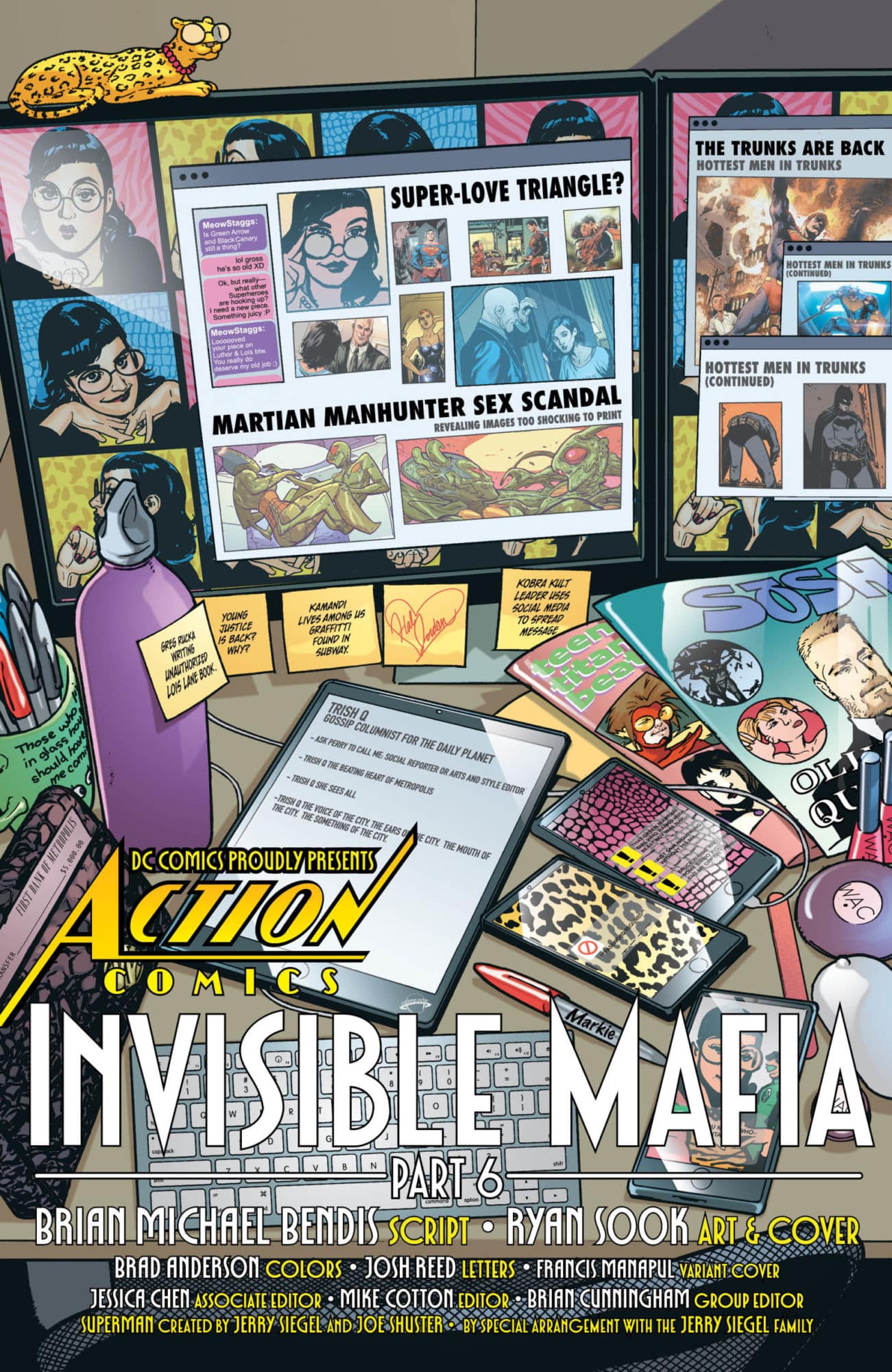 We get the gossip desk to open this issue, in the tradition that Bendis and Sook have set on the title. And we already noticed Greg Rucka's Lois Lane comic book getting a mention…
