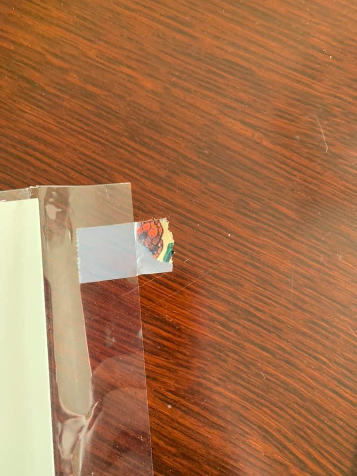 And while doing so absent-mindedly set the comic down on the bag it had just come from. Without considering the sticky tape.