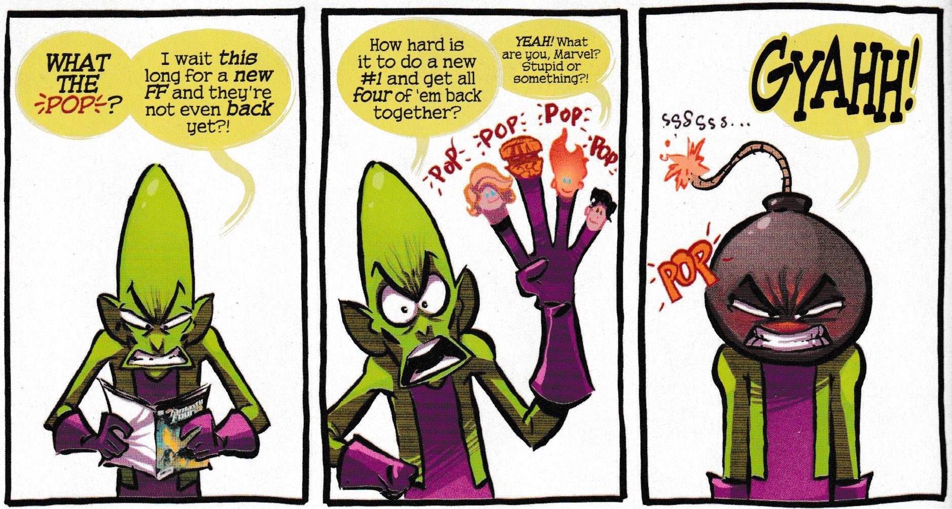 There's also an Impossible Man strip drawn by Skottie Young dealing with, well, the lack of a return and new promises for September. For me, it may well be the highlight.