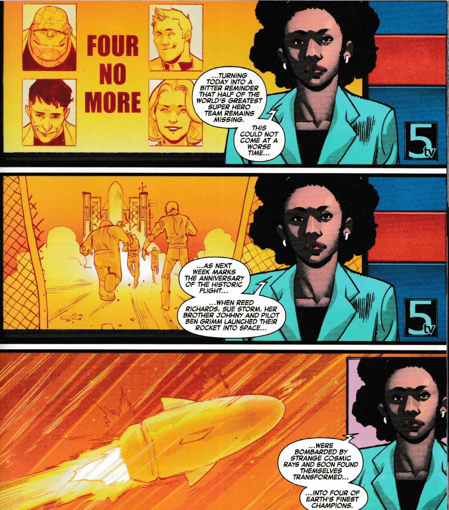 The return of the Fantastic Four in Fantastic Four #1 is about memory and memorials. Days that mark other days. So just as Fantastic Four #1 comes out on the same day that the first Fantastic Four was published 57 years ago, within the Marvel Universe it is also the anniversary of that space flight that formed the Four in the first place.