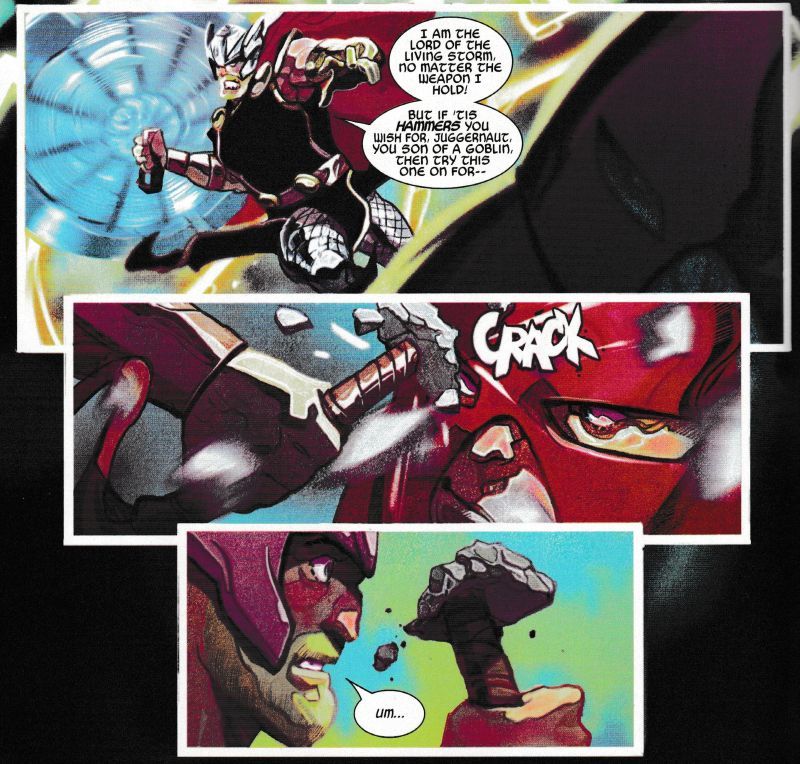 And, for Thor, it's a run around his world, his universe and his timeline. Returning to the mantle of Thor, he is still without his Mjolnir of old, and has to make do with a series of clearly inferior hammers.
