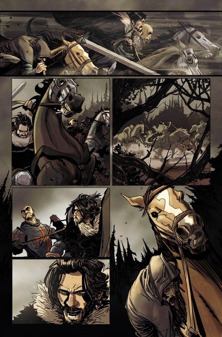 Writer Cullen Bunn, artist Fran Galan, and letterer Simon Bowland are teaming up in July for a new comic called Knights Temporal about a former crusader named Auguste de Riviere who, feeling guilty about his part in the medieval version of the Twitter culture wars, follows a necromancer into a forest and ends up jumping throughout time and space, like a certain Sam Beckett from the hit 1989 television series Quantum Leap.