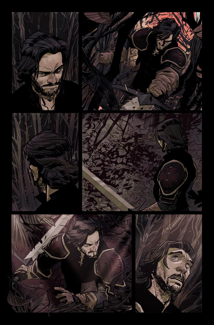 This is a weird fantasy tale. It's the story of Auguste, a medieval knight in search of redemption, who pursues a vile necromancer into a forbidden, haunted forest. It is said that no one who enters this forest ever leaves. This is not the case for Auguste, though. He leaves the forest–but when he exits, he finds himself in another time. And another time. And another time. Auguste's very existence is shattered and cast through time and space. He exists over and over again in multiple eras. And in all of those eras, he has the same goal–to stop the necromancer's evil plans. There's a strange connection between all of these different "instances" of Auguste's existence, one that can be both a boon and a deadly disadvantage.