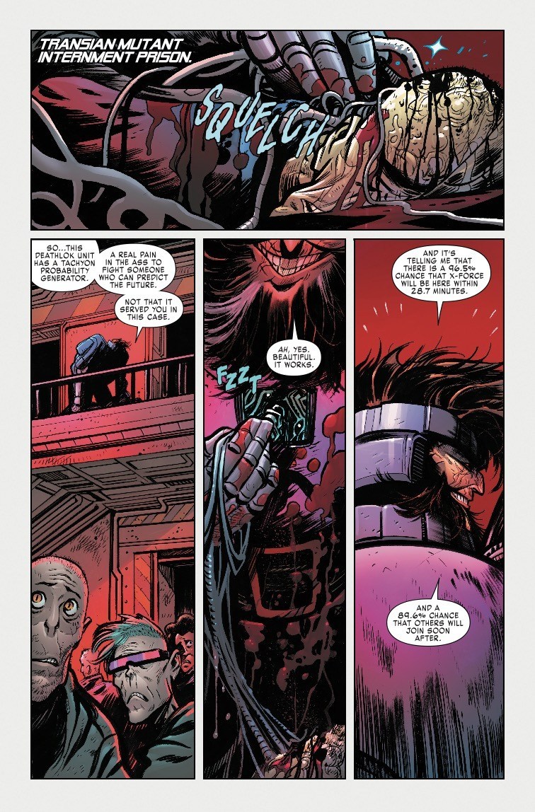 Tough luck, Graeme. But maybe if you could get your hands on a tachyon probability generator, this could be avoided? That's what Ahab has done in this preview of next week's X-Force #4…
