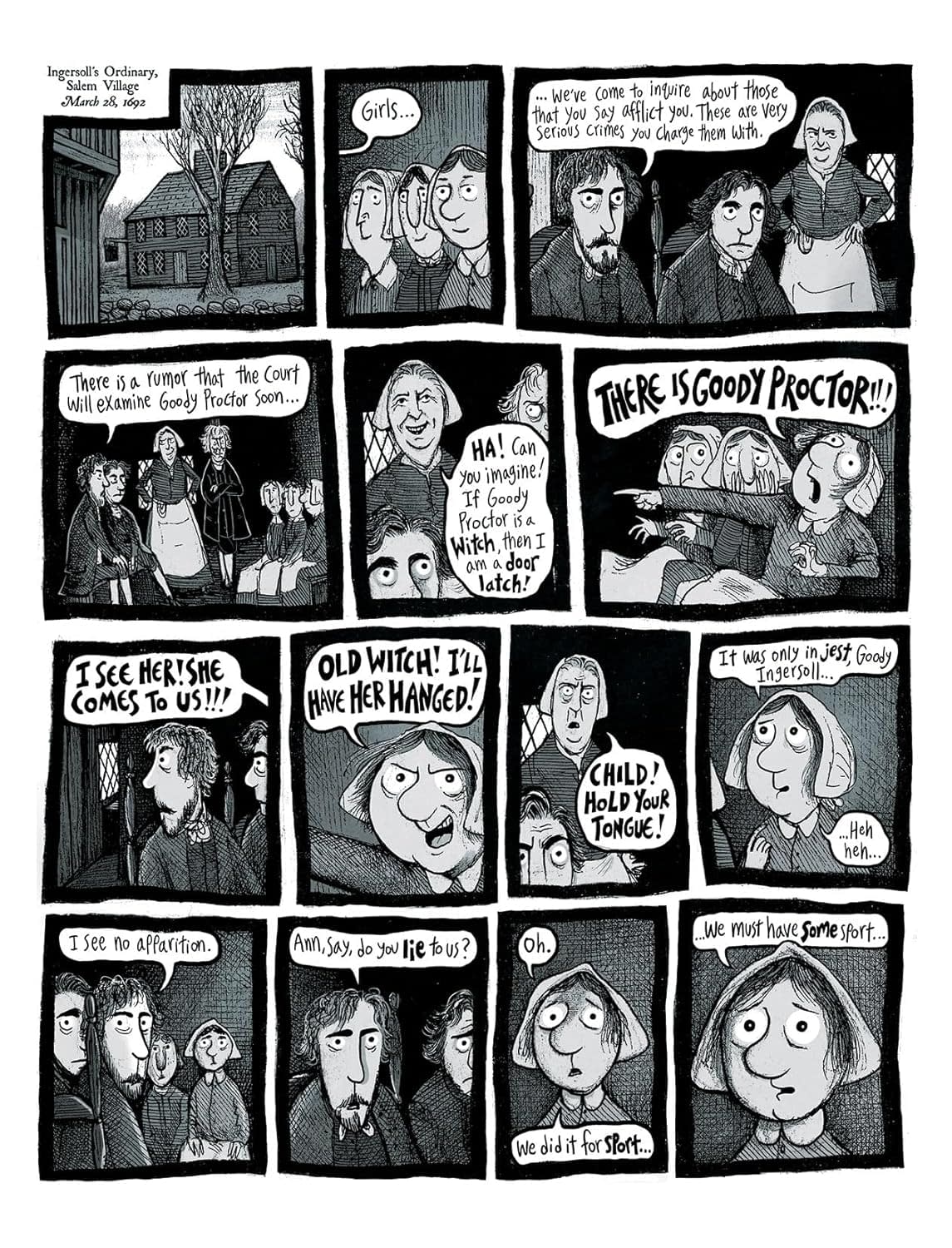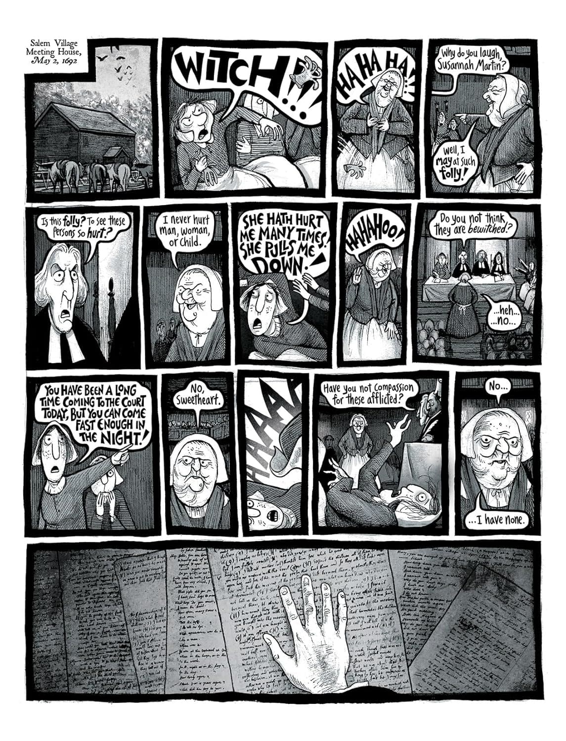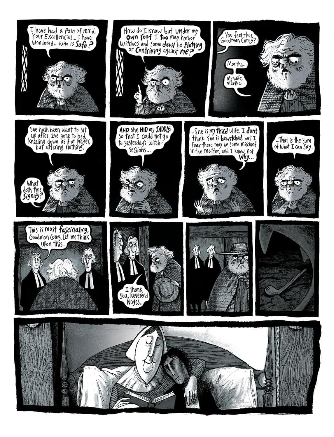 In Salem, Massachusetts, 1692 is a year of terror. When accusations of witchcraft plunge the community into paranoia and death, curmudgeonly farmer Giles Corey and his great-souled wife Martha are forced to confront their troubled pasts, fighting to hold onto their principles even at the cost of their lives. In the 1860s, famed writers Nathaniel Hawthorne and Henry Wadsworth Longfellow stroll the streets of Salem together, reflecting on their own dark connections to those wicked days. Today, graphic novelist Ben Wickey wrestles with the complex legacy of "the Witch City" and what it shows us about the best and worst of humanity.