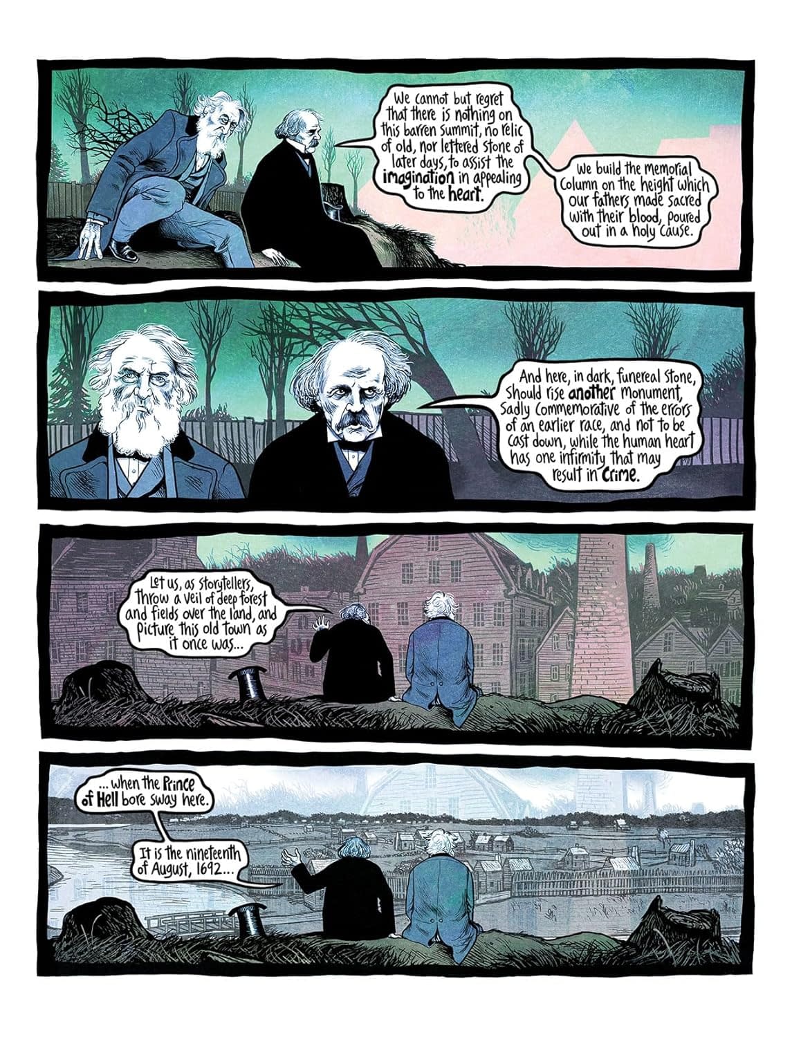 Based on true events, set in three centuries, and hand-drawn over a decade, More Weight is a stunning visual symphony — a unique and profound inquiry into the infamous Salem witch trials and the long shadows they still cast on us all.