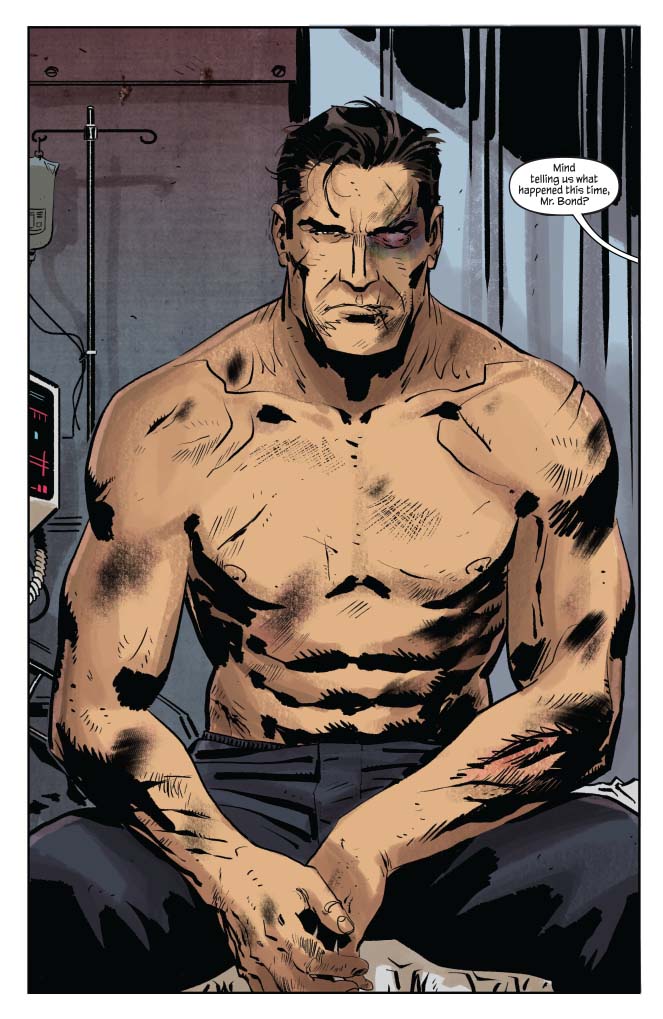 I think the original vibe in the dialogue was a bit more homoerotic, but sometimes you gotta pick your battles. I think I still managed to get the overall vibe across pretty well in the rest of the chapter. I also love Valentina's colors here, especially when it comes to Bond's swollen eye. Those are some very pretty ugly colors.