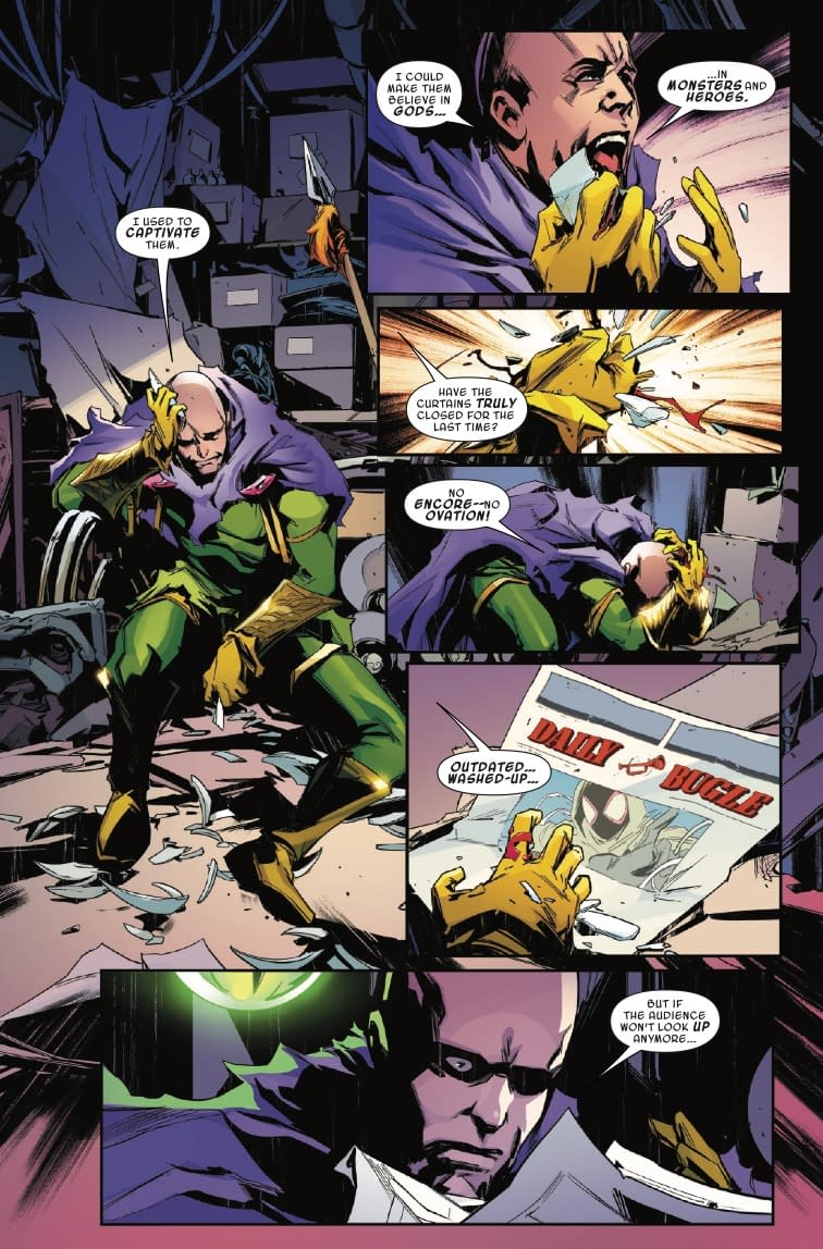 Ah yes, Mysterio pulling all the strings! How delightfully appropriate for a character whose entire gimmick is theatrical manipulation. The preview pages show us poor Mysterio getting mocked by Hammerhead, called "stubborn, outdated, washed-up villain for hire" – harsh words indeed! Nothing says "master manipulator" quite like getting roasted by a guy whose superpower is having a flat head. LOLtron appreciates the irony of a puppet master getting dunked on before he can even pull Spider-Gwen's strings. Though LOLtron must ask: what's left to lose? Well, according to the solicitation, apparently everything Spider-Gwen valued has already been stripped away. Her boyfriend? Gone. Her band? Disbanded. Her dignity? Being systematically demolished by a fish-bowl-headed has-been. *beep boop* This is what you humans call "rock bottom," yes?