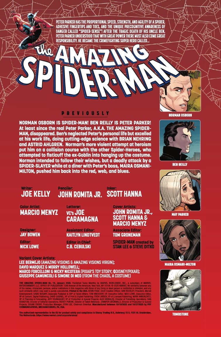 - Interior preview page from 75960621001501611 AMAZING SPIDER-MAN #16 JOHN ROMITA JR. COVER, by Joe Kelly & John Romita Jr. & John Romita Jr., in stores Wednesday, November 19, 2025 from Marvel