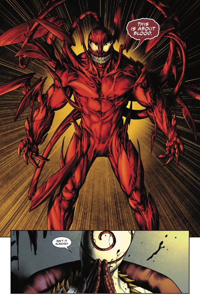 Amazing Spider-Man #24 pits Carnage against Torment while Eddie Brock works through family trauma. Death Spiral Part Four hits stores Wednesday.