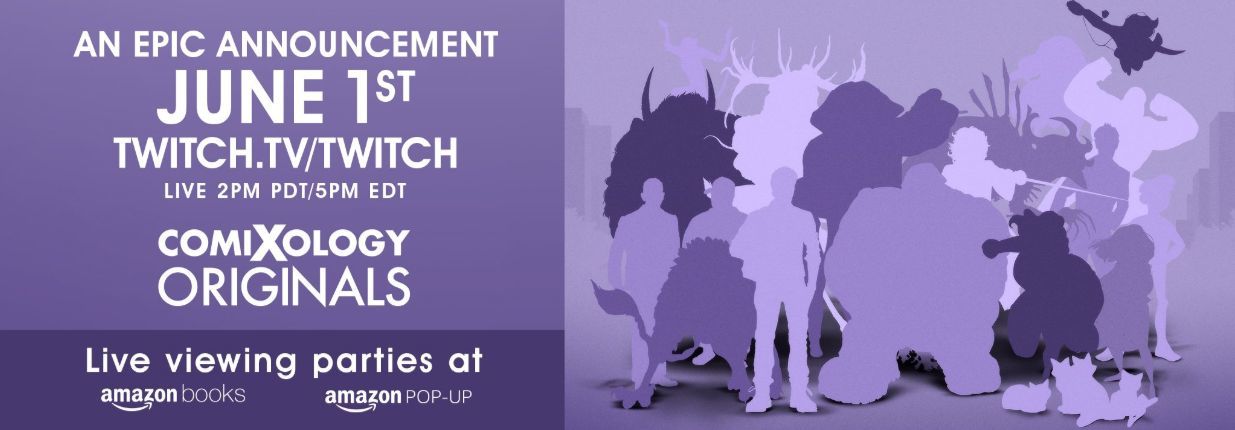 On Friday, June 1st at 2pm PDT/5pm EDT/10pm BST on Twitch for a major announcement from comiXology Originals via livestream. Hosted by esports personality Marcus "djWHEAT" Graham, it will feature special guests including comic book writers and artists.