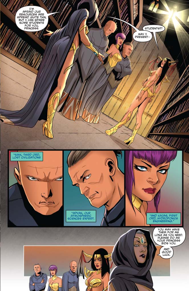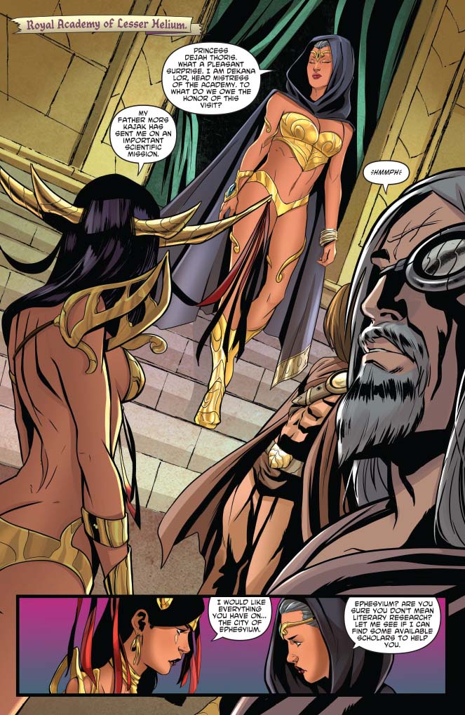 A note about Dejah's wardrobe. Some people are asking, why does she change her clothes so much? Because she's a f*cking princess, and she can, that's why! You should be asking why more characters in comics DON'T change outfits more often (or their hair, for that matter) but anyway, you're not here to hear me preach.