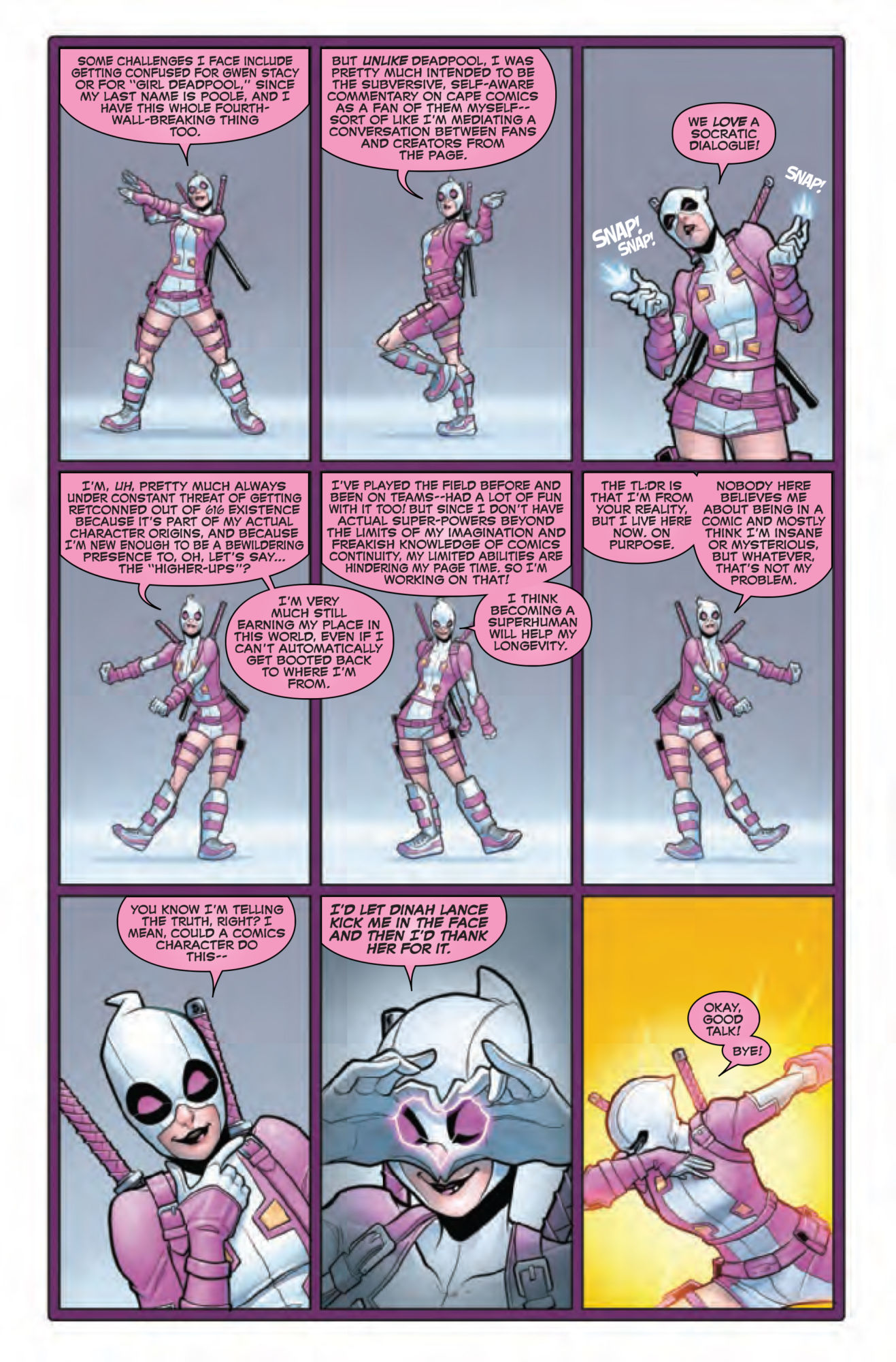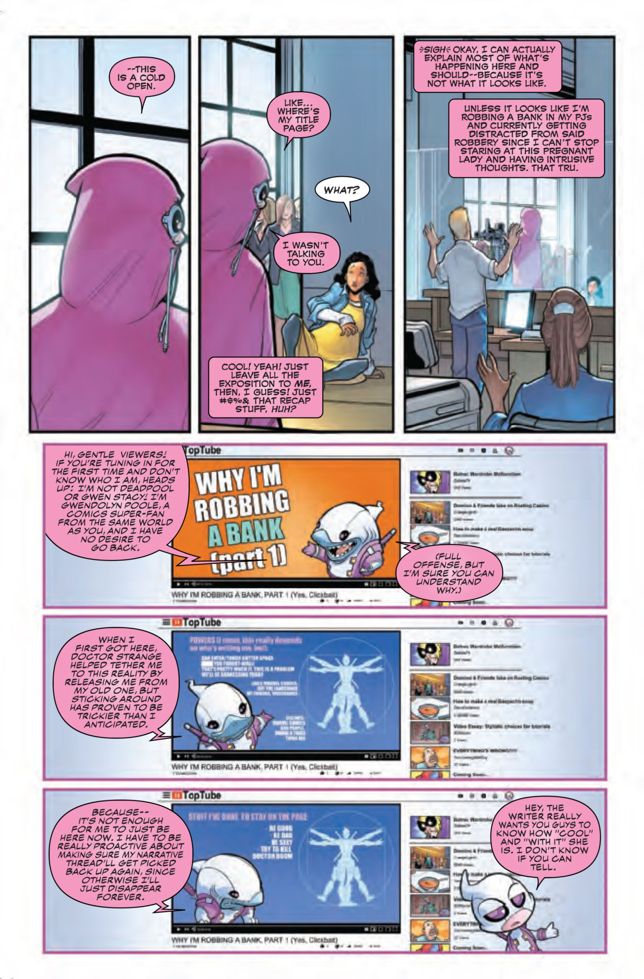 Gwenpool works out what's going on in this comic along with the reader, also providing some helpful exposition.
