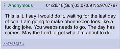 "This is it. I say I would do it, waiting for the last day of con," the post read. "I am going to make phoenixcon look like a fucking joke."