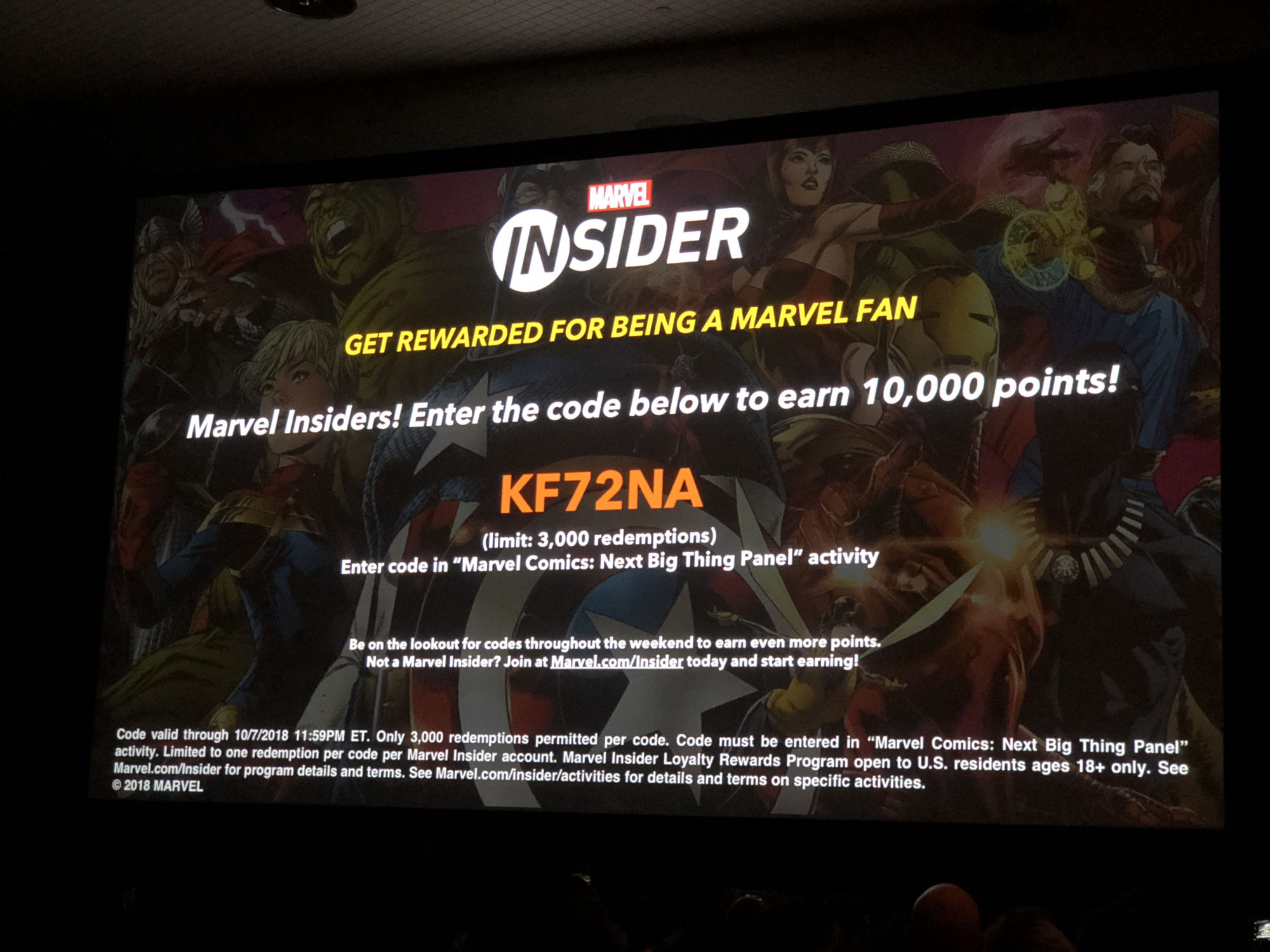 Okay, I gave everyone in the hall a little head start. But if you want 10,000 points in the Marvel Insider reward scheme, and you weren't in the Marvel Next Big Thing panel at New York Comic-Con and if 3000 people haven't already claimed it, then knock yourself out…