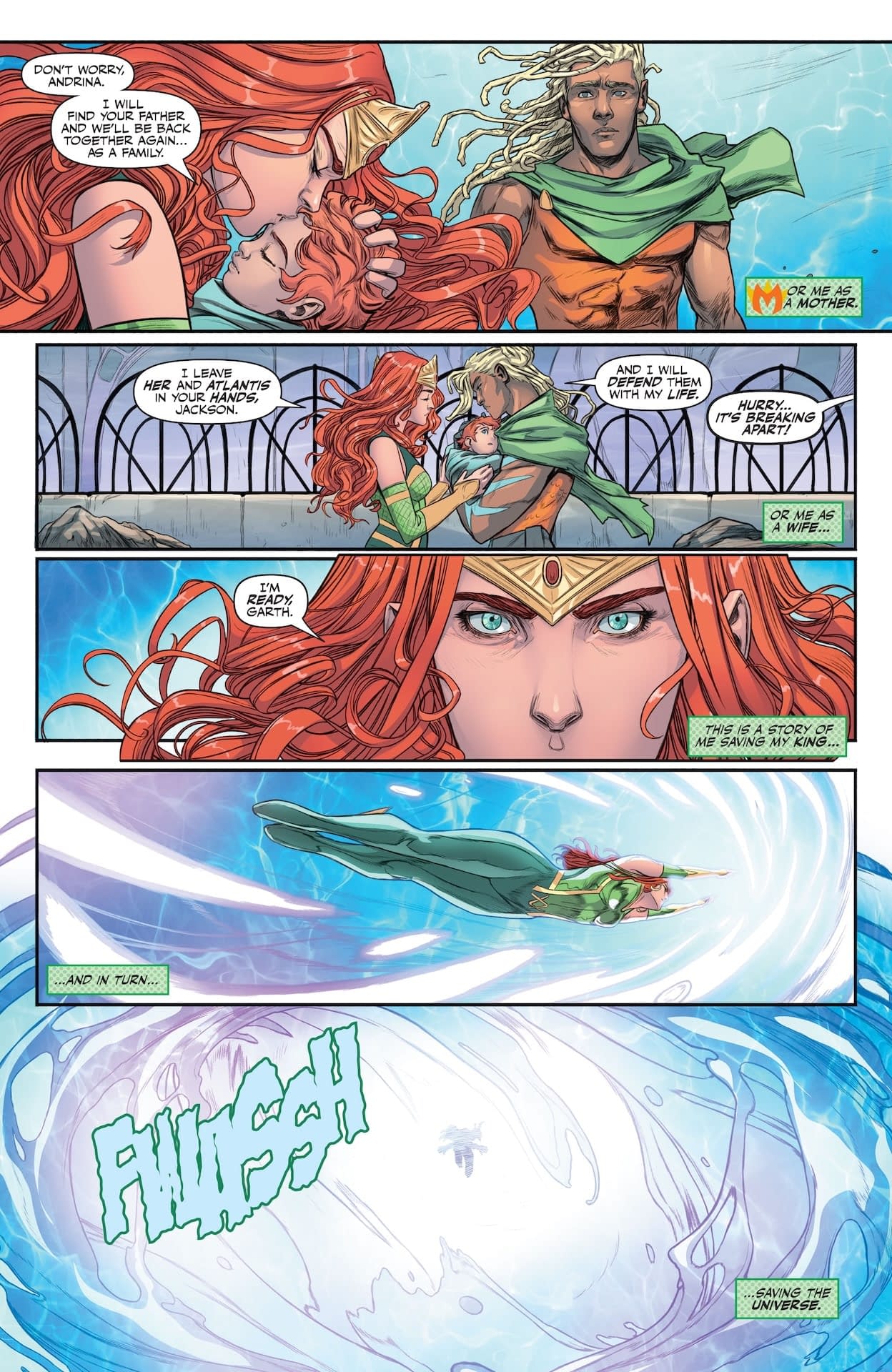 A KING'S DESCENT INTO MADNESS! Mera and the mystery of Atlantis unravels, even as Andy moves towards her ultimate goal and Arthur contends with the power of the Blue! But is this power too much for even a KING to contend with? An oceanic onslaught unloads on the king of the seven seas, and the connection between the DARK TIDE and DARKSEID is at last revealed!