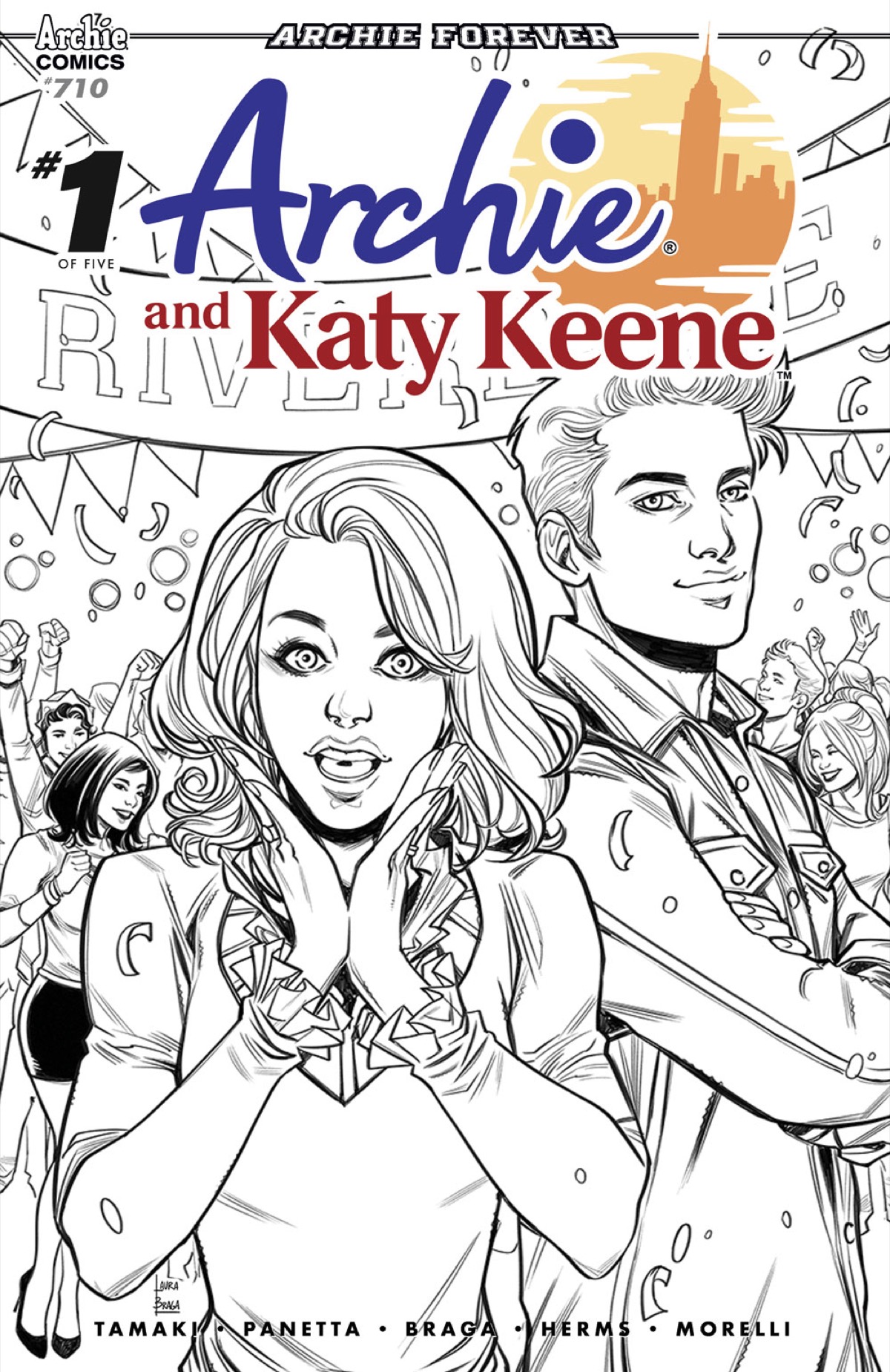Written by Mariko Tamaki (ARCHIE AND SABRINA, This One Summer) and Kevin Panetta (Steven Universe, Regular Show) with art by Laura Braga (BLOSSOMS 666), Matt Herms and Jack Morelli, the new series continues from where the current ARCHIE AND SABRINA leaves off, with the "Insta-famous" Katy whirlwinding her way through town and rattling the ultra-competitive Archie Andrews.