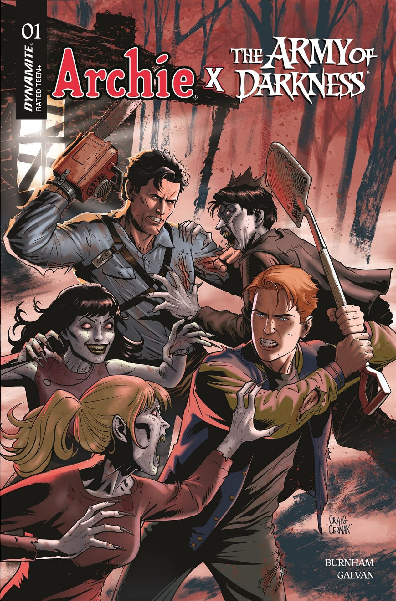 "Teased previously around New York Comic Con, Dynamite and Archie now come locked and loaded with the thrilling creative team for this maniacal mashup. Writer Erik Burnham is back in the driver's seat of Ash and the Army of Darkness mythos, now bringing in the riotous Riverdale cast to up the ante. This series follows his work a few years back on Army of Darkness vs. Reanimator: Necronomicon Rising. His deep and beloved bibliography on top franchises like Ghostbusters, Teenage Mutant Ninja Turtles, Transformers, Godzilla, and more makes him the perfect match for the Archie gang. To really capture the Archie side of the equation and its timeless aesthetic known around the world for 85 years, editor Matt Idelson has paired Burnham with the peerless Bill Galvan. The two-decades Archie Comics veteran artist will perfectly capture the iconic look of Riverdale, with the crossover's major twist! Ashley J. Williams has found himself doomed to battle against the forces of evil, over and over again, whether he likes it or not. Whether he's clocking in at S-Mart or hurling through the multiverse, the cycle of violence always follows him and repeats itself. That is, until he finds himself in the picturesque town of Riverdale. This bewilderingly wholesome community seems to break the curse that has plagued him ever since he first crossed paths with otherworldly evil all those years ago. This serene peace all comes crashing down when an over-curious teenager by the name of Archie Andrews stumbles upon a copy of the Necronomicon Ex Mortis, accidentally summoning the horrifying Deadites once more! Ash will find himself unexpectedly allied with the good townsfolk of Riverdale, fighting to hold back the undead hordes long enough for Archie to undo what he's unwittingly done."