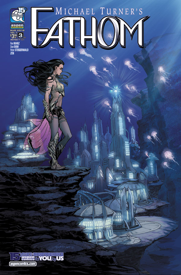 Michael Turner and Aspen Comics' flagship title commemorates its landmark twenty years since its debut in grand fashion! The superstar creative team of Ron Marz (Green Lantern, Witchblade) and Siya Oum (Lola XOXO) are on board to deliver Fathom, and the iconic heroine, Aspen Matthews, to a new generation of readers as well as loyal fans alike!