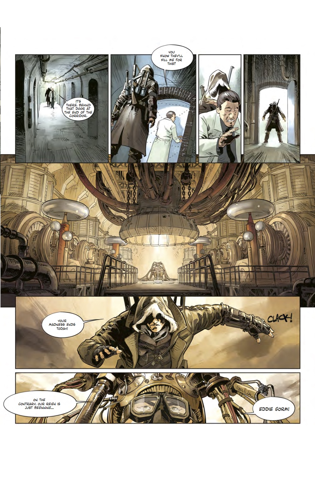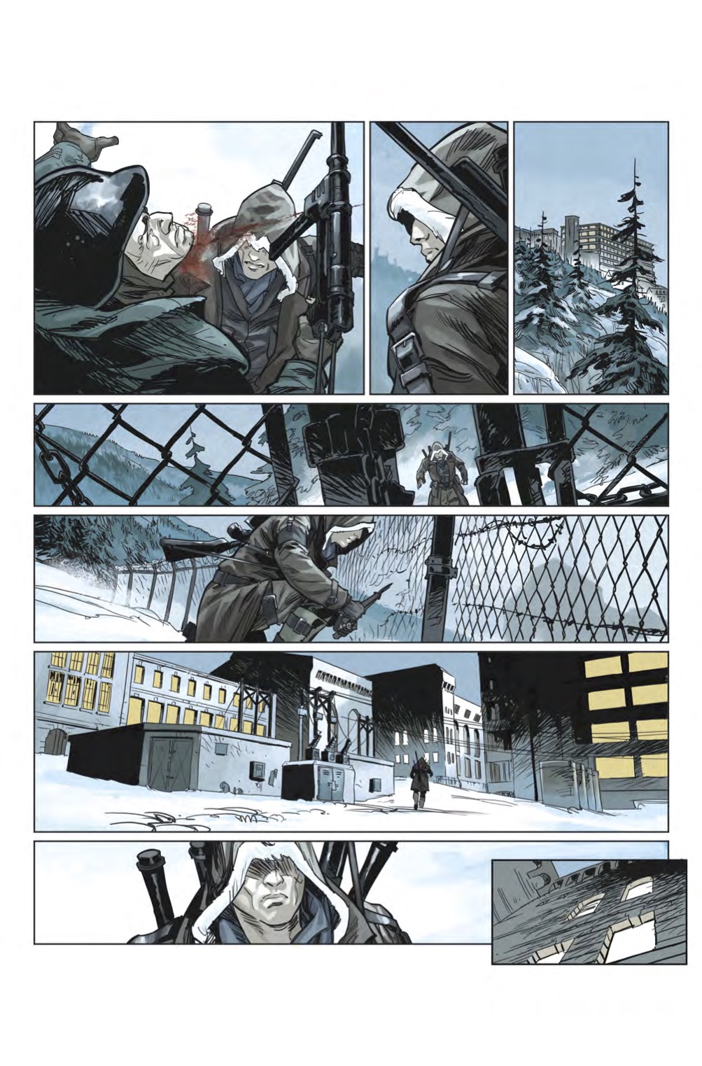 Featuring a brand new Assassin set against the backdrop of World War II. As the atomic age dawns, fresh new assassin Eddie Gorm infiltrates the Templars to foil their plans to create a devastating new weapon. 1940s London is brought to vivid life by artist Jean-Baptiste Hostache in a tale set during the blitz!
