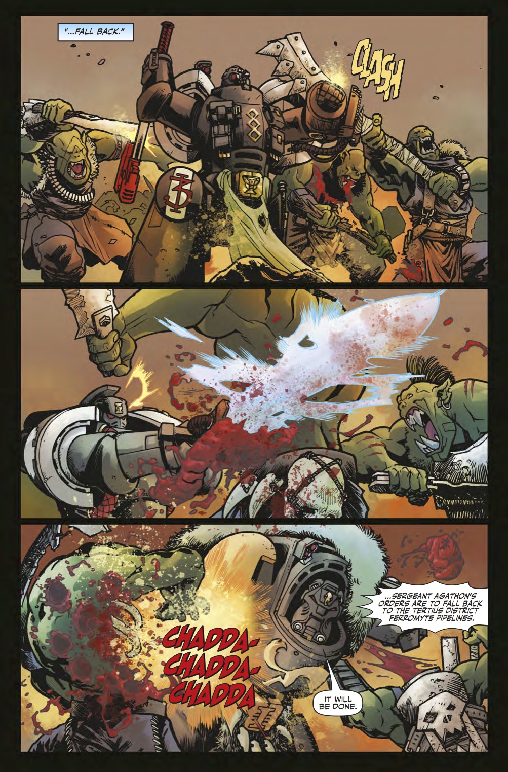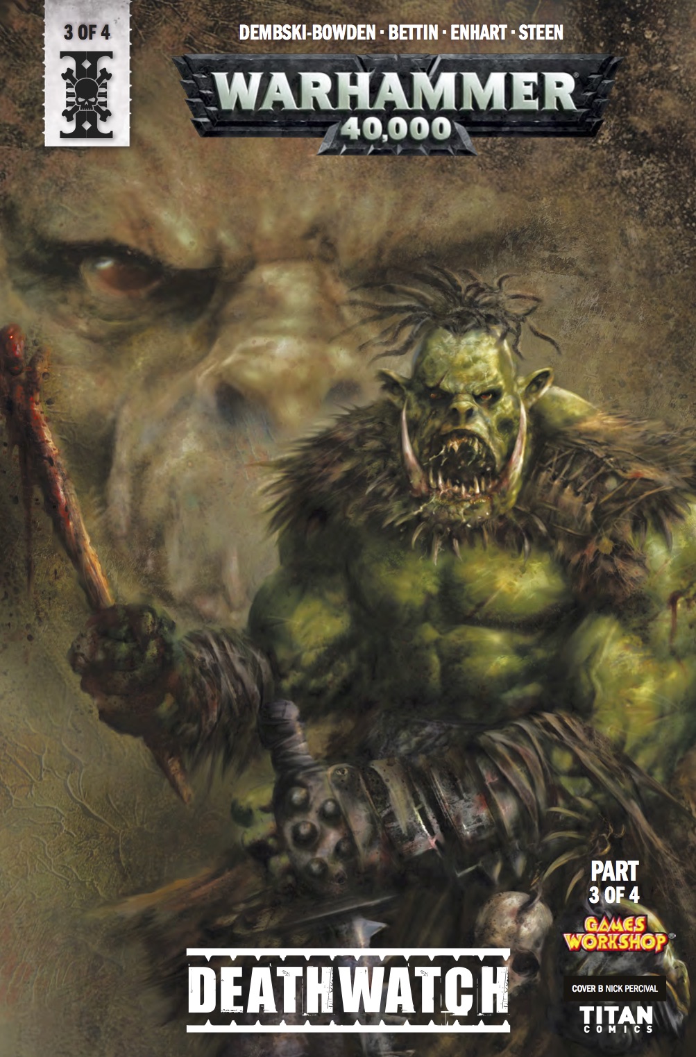 WARHAMMER 40,000: DEATHWATCH #3 Writer: Aaron Dembski-Bowden Artist: Tazio Bettin Publisher: Titan Comics FC, 32pp, $3.99, On sale: August 8, 2018 Written by Black Library superstar Aaron Dembski Bowden! The Deathwatch are the best of the best from all chapters of Space Marines! They alone have the strength of mind and body to battle the alien across the universe, defending humanity from the Xenos that would destroy them!