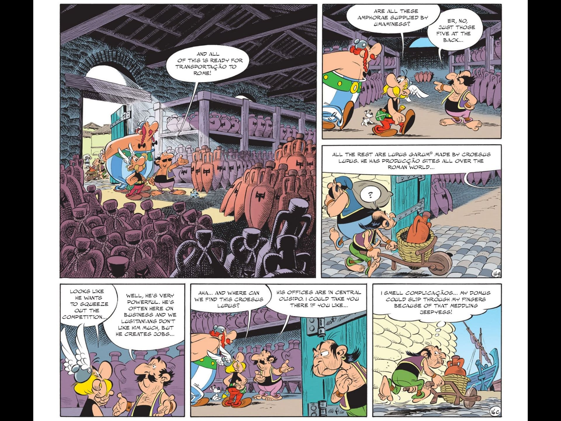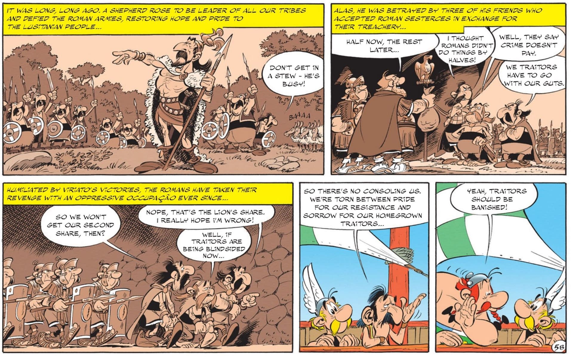 - Asterix and Obelix tackle Roman intrigue, local betrayals, and economic lessons set in ancient Portugal.