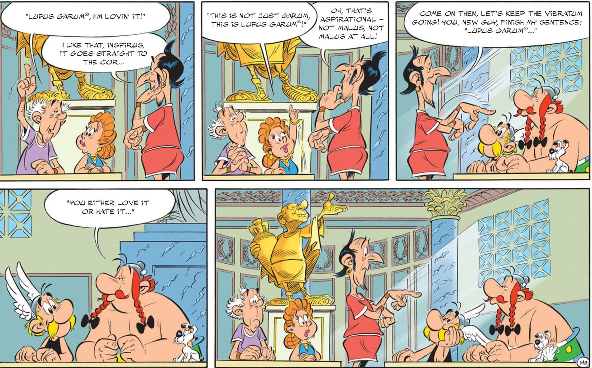 Didier Conrad told me that "it came about because our publisher's a big fan, and as it happened, we love him too, so it came naturally, but he doesn't really have much to do with Portugal or Lusitania, so it was about having fun". Though we agreed that if Ricky Gervais were a Roman centurion, then occupying Portugal wouldn't entirely be out of character. "Any English personality, in fact, because if you look at the British Empire, it's basically the Roman Empire all over." I mean, fair enough, we stole from the best.