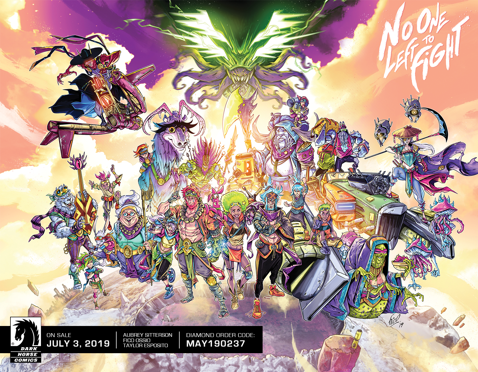 We've previously reported on No One Left to Fight, the upcoming series from Dark Horse Comics by writer Aubrey Sitterson, artist Fico Ossio, and letterer Taylor Esposito that takes the spirit of popular anime like Dragon Ball and adds a new depth, according to Sitterson, "a story about growing older, coming to grips with the choices you've made, and learning to appreciate what all your trials and tribulations have afforded you. With lots of explosive, earth-shattering action, obviously." We also spoke at length with Sitterson and Ossio about the characters and influences in an interview you can read here.