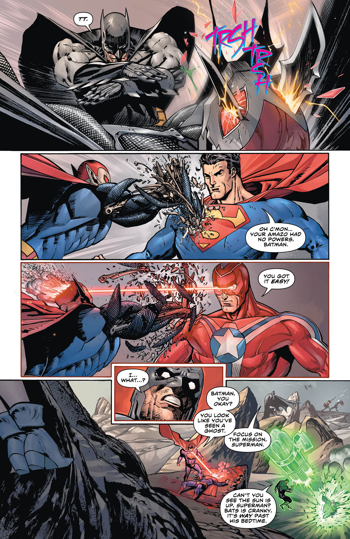 It's quite the contrast, the Batman of the Justice League and the Batman of Gotham…only one of them should really be doing autopsies. They call this crossover "The Price" for a reason.