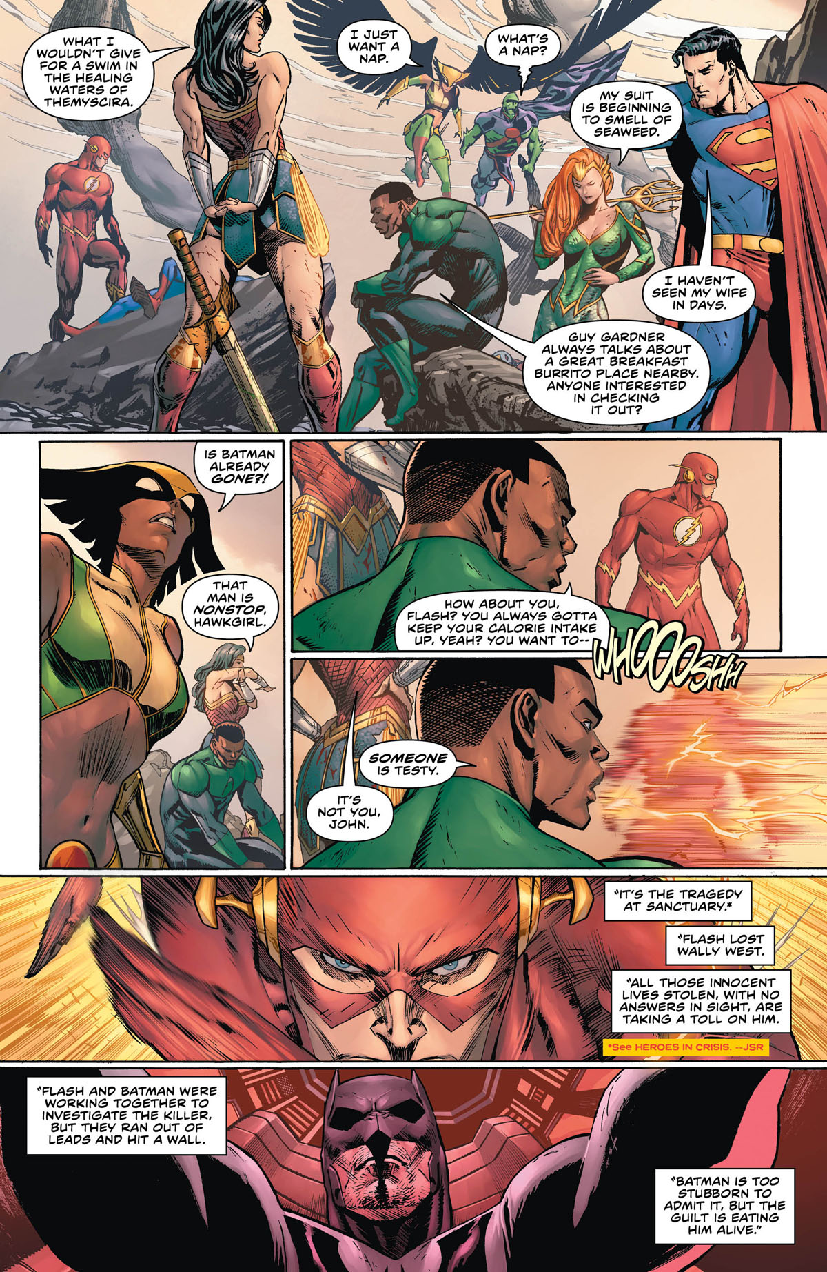 As with the last Batman/Flash crossover, "The Button", Tom King has excused himself and let Josh Williamson write the comic. Except of course in this case, rather than a crossover event with DC Rebirth and Watchmen, which Tom King may have thought was a little close to the knuckle, this is a crossover with Tom King's own Heroes In Crisis.