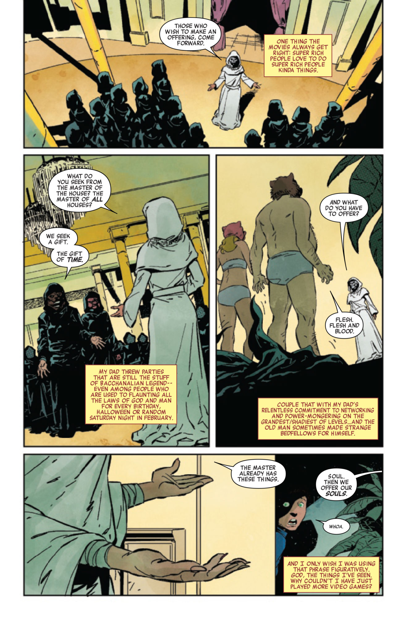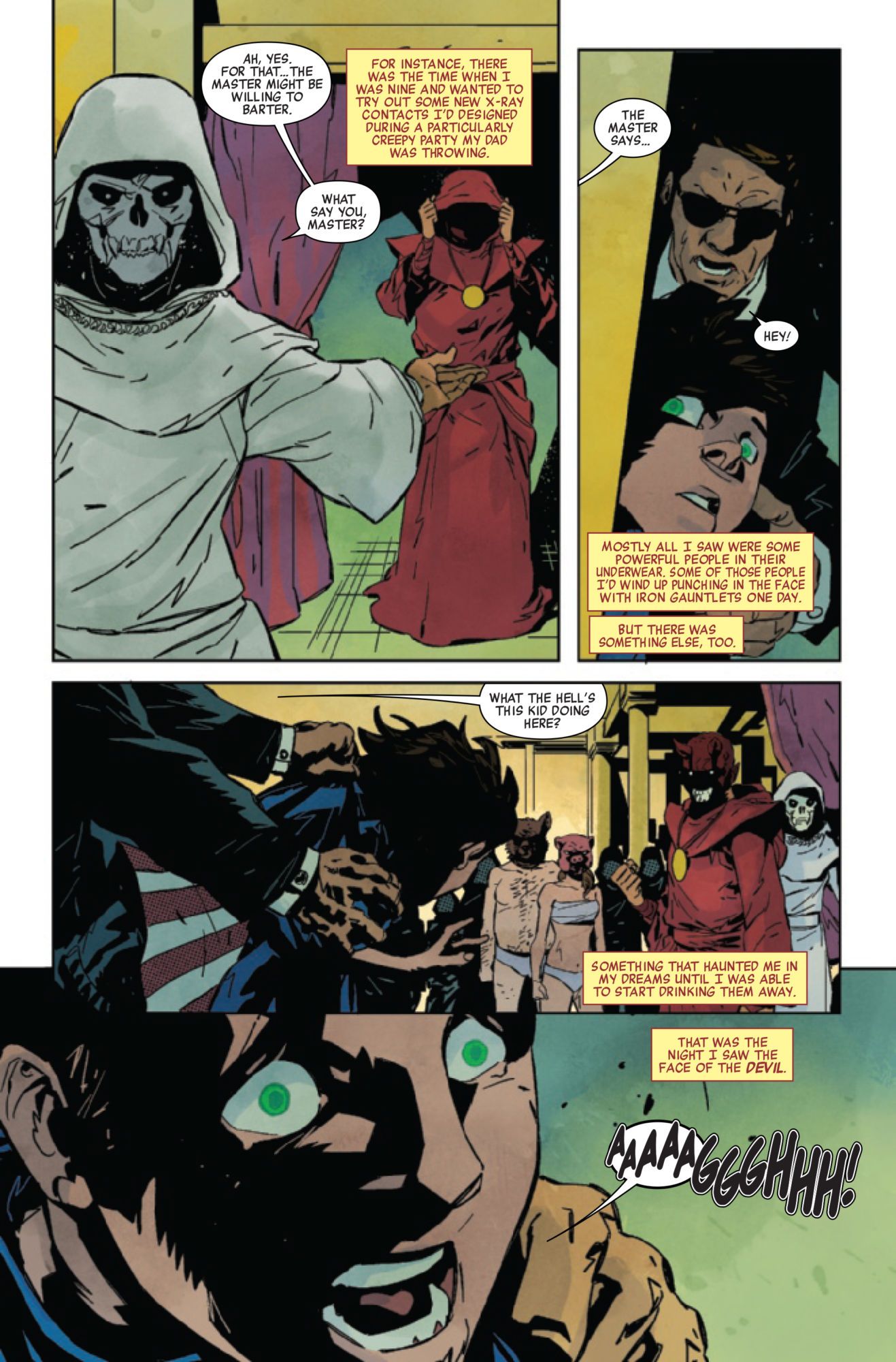 The preview for the issue released over the weekend already dropped some new revelations about Tony Stark's adoptive father, Howard Stark. We already knew he had a predilection for the debaucherous sex parties of the Hellfire Club. But as Tony Stark, trapped one million years in the past in this storyline titled The Last Temptation of Tony Stark, remembers from his childhood, the elder Starks' sex lives skewed even more toward the creepy and satanic, as we see Tony spying on a sex ritual straight out of Eyes Wide Shut…