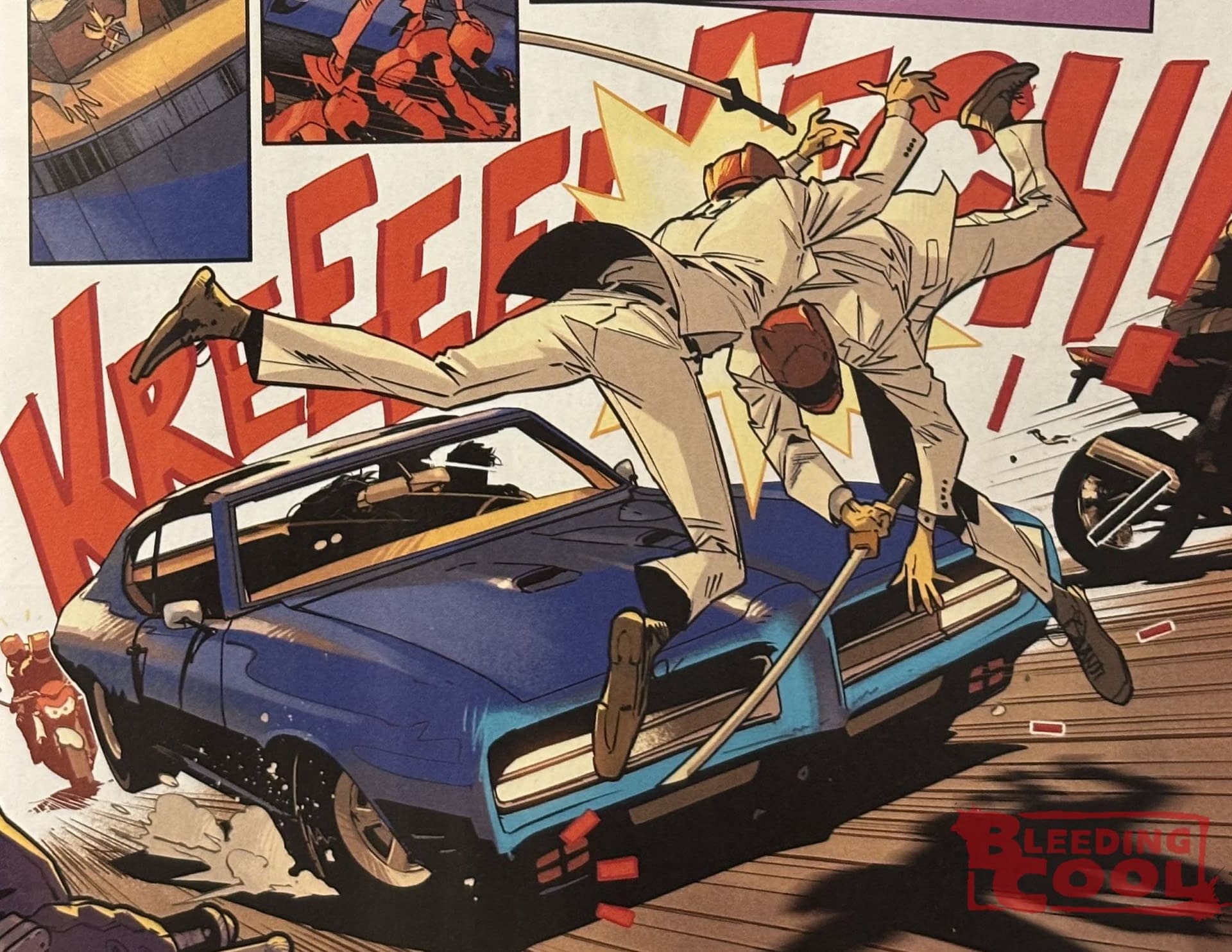Not just running over the ninja samurai assassins targeting his date, Arkham Tower psychiatrist and inventor of a device to cure supercriminality, Doctor Zeller….