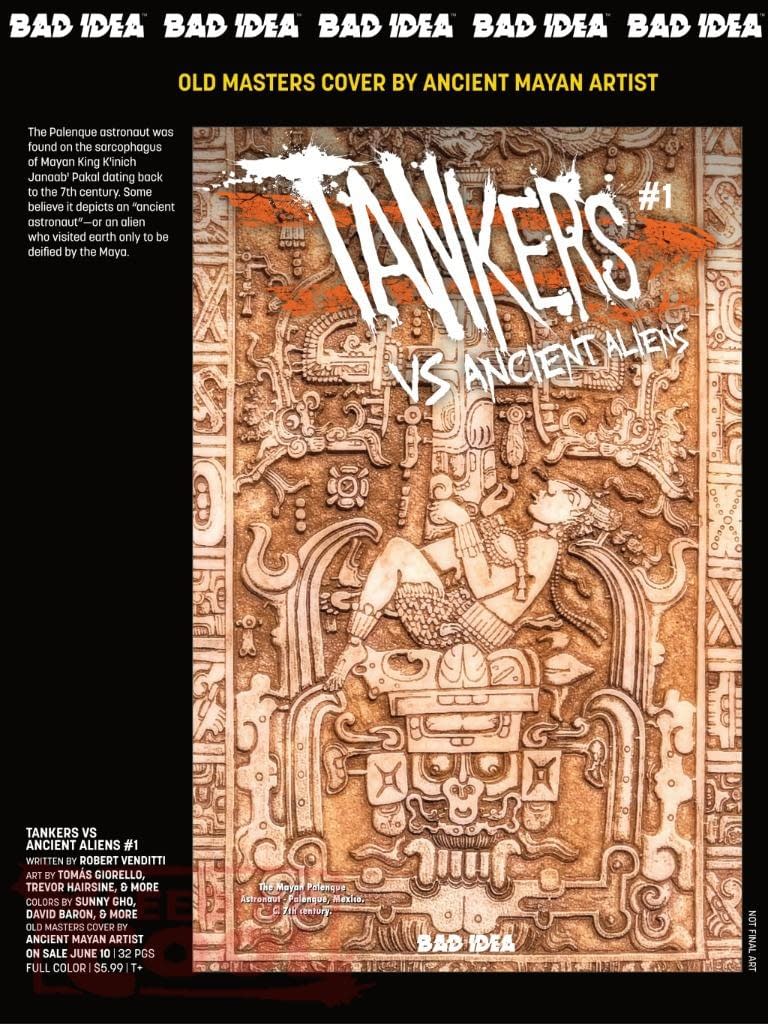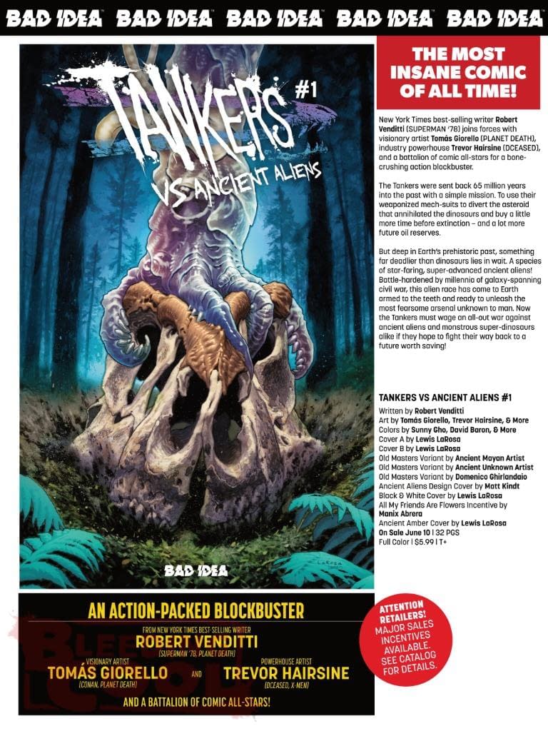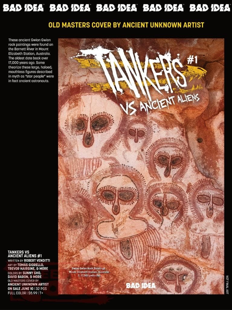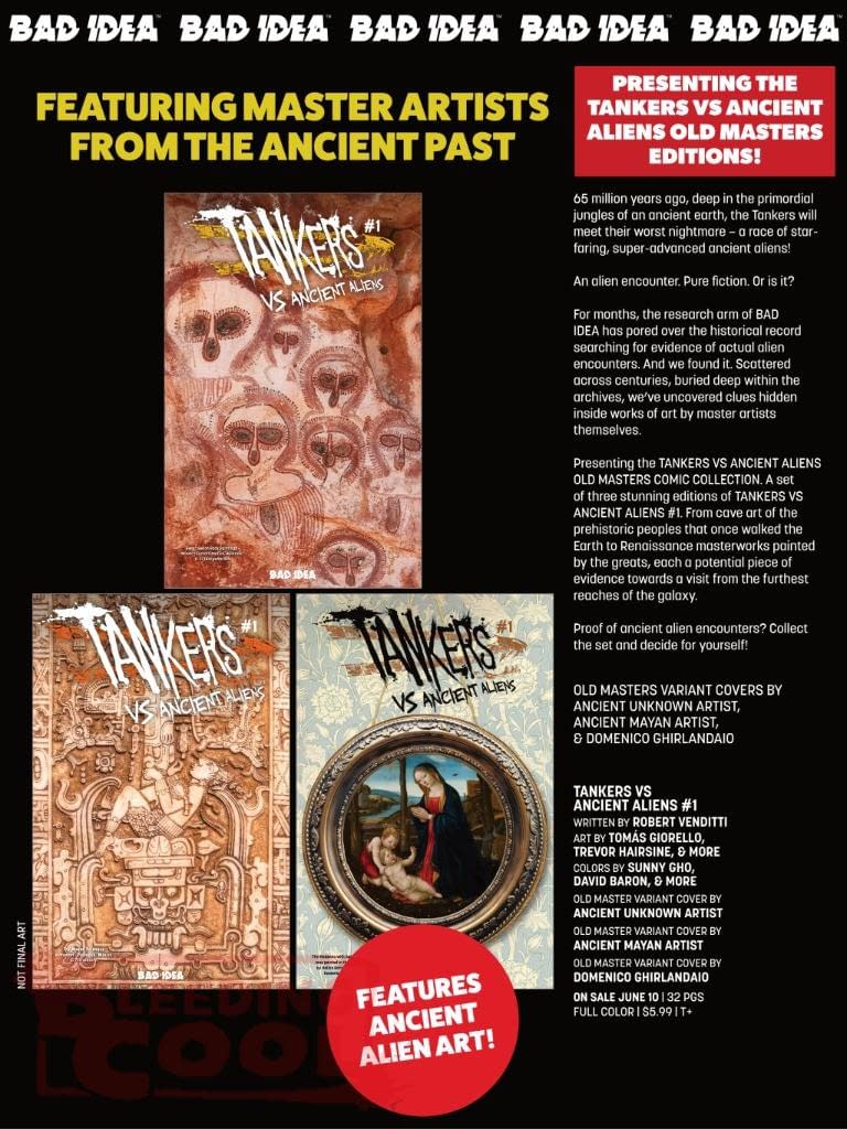 - Bad Idea's June 2026 solicits debut Tankers vs Ancient Aliens #1, a new action-packed sci-fi series.