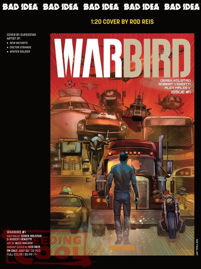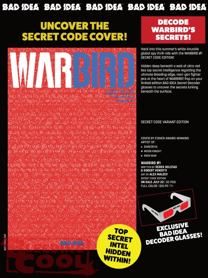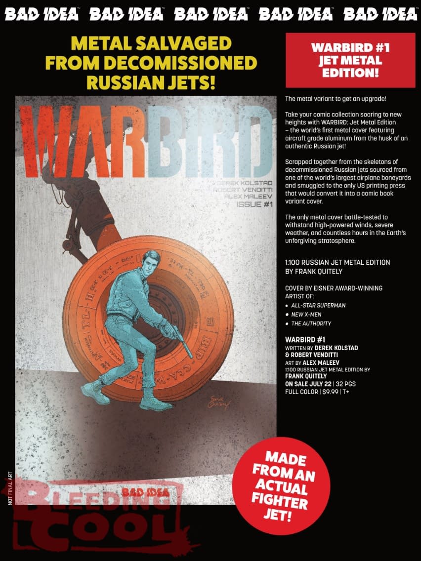 Bad Idea Comics' full July 2026 solicits and solicitations see the launch of Warbird #1 with Alex Maleev as the ongoing artist, written by Derek Kolstad and Robert Venditti, a one shot called Banana No 1 by Joshua Dysart and Kevin Maguire, and the cryptid/kaiju comic Dingoliath #1 by Robert Venditti, Brockton McKinney and Manix Abrera, as well as more Olympus Saga, Hank Howard, Tankers Vs Aliens and Hub.