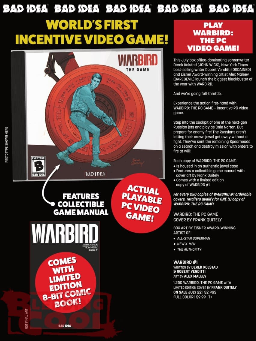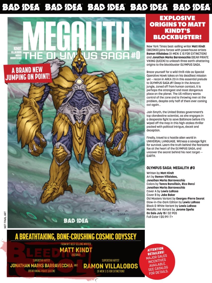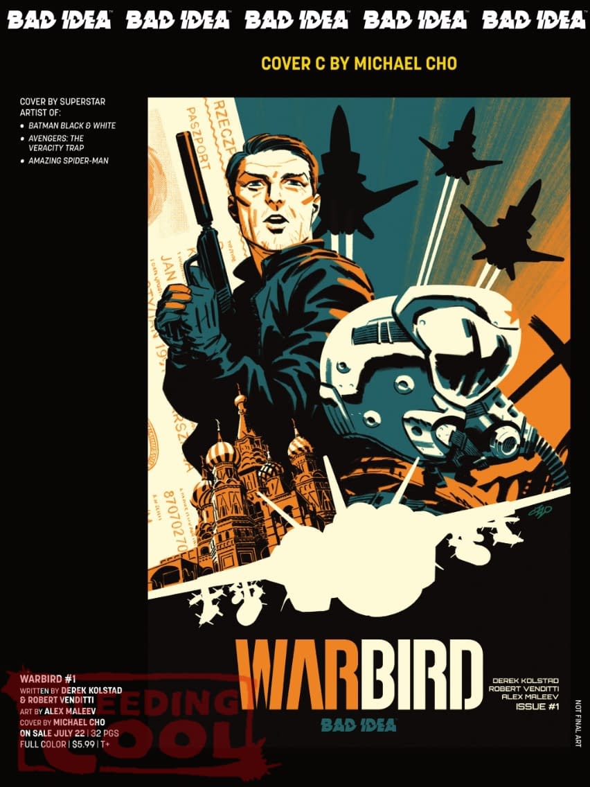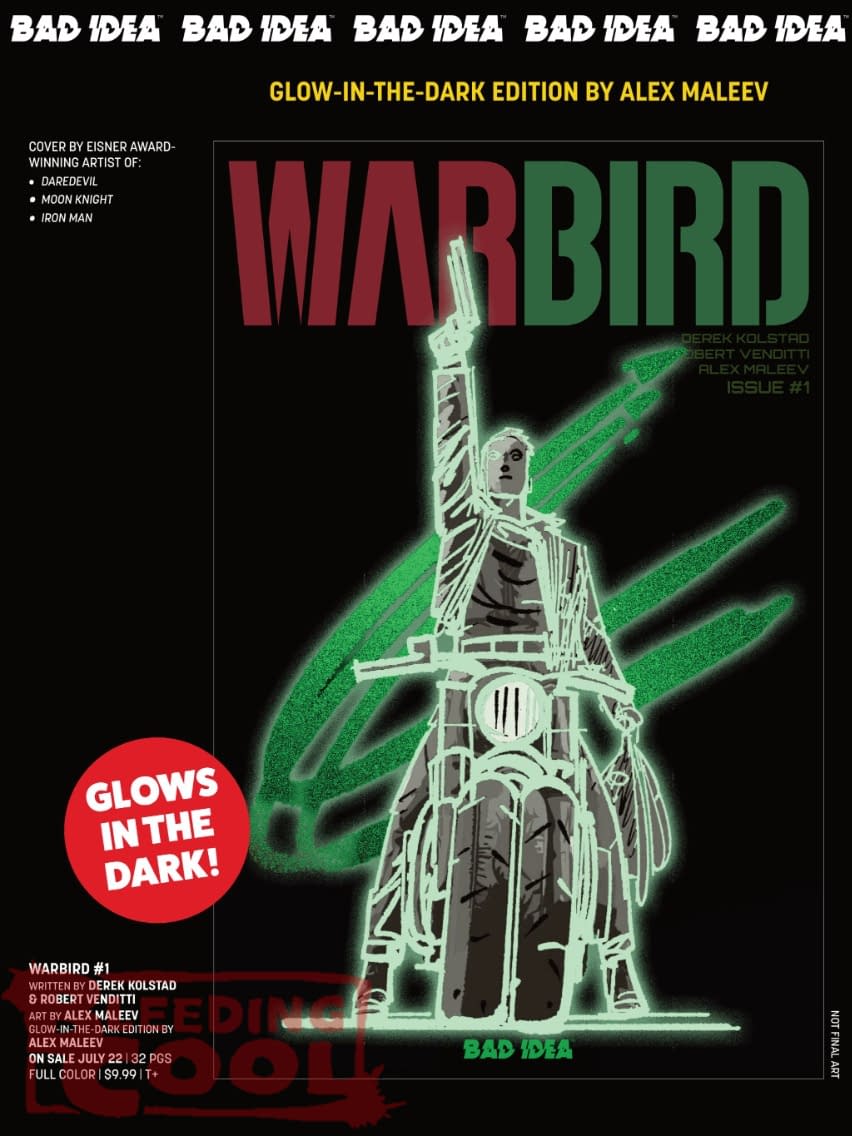Bad Idea Comics' full July 2026 solicits and solicitations see the launch of Warbird #1 with Alex Maleev as the ongoing artist, written by Derek Kolstad and Robert Venditti, a one shot called Banana No 1 by Joshua Dysart and Kevin Maguire, and the cryptid/kaiju comic Dingoliath #1 by Robert Venditti, Brockton McKinney and Manix Abrera, as well as more Olympus Saga, Hank Howard, Tankers Vs Aliens and Hub.