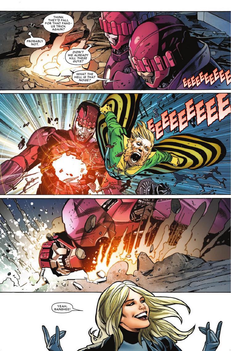 In any case, if you thought things were bad for Banshee before, look out, because they're about to get a whole lot worse. In next week's issue of Astonishing X-Men, the last one, by the way, Banshee is called to the scene to help the X-Men battle Reavers who have taken on the power to assimilate any technology under their control. So as you can imagine, when they gain control of the nanobots keeping Banshee in check… bad things are gonna happen.