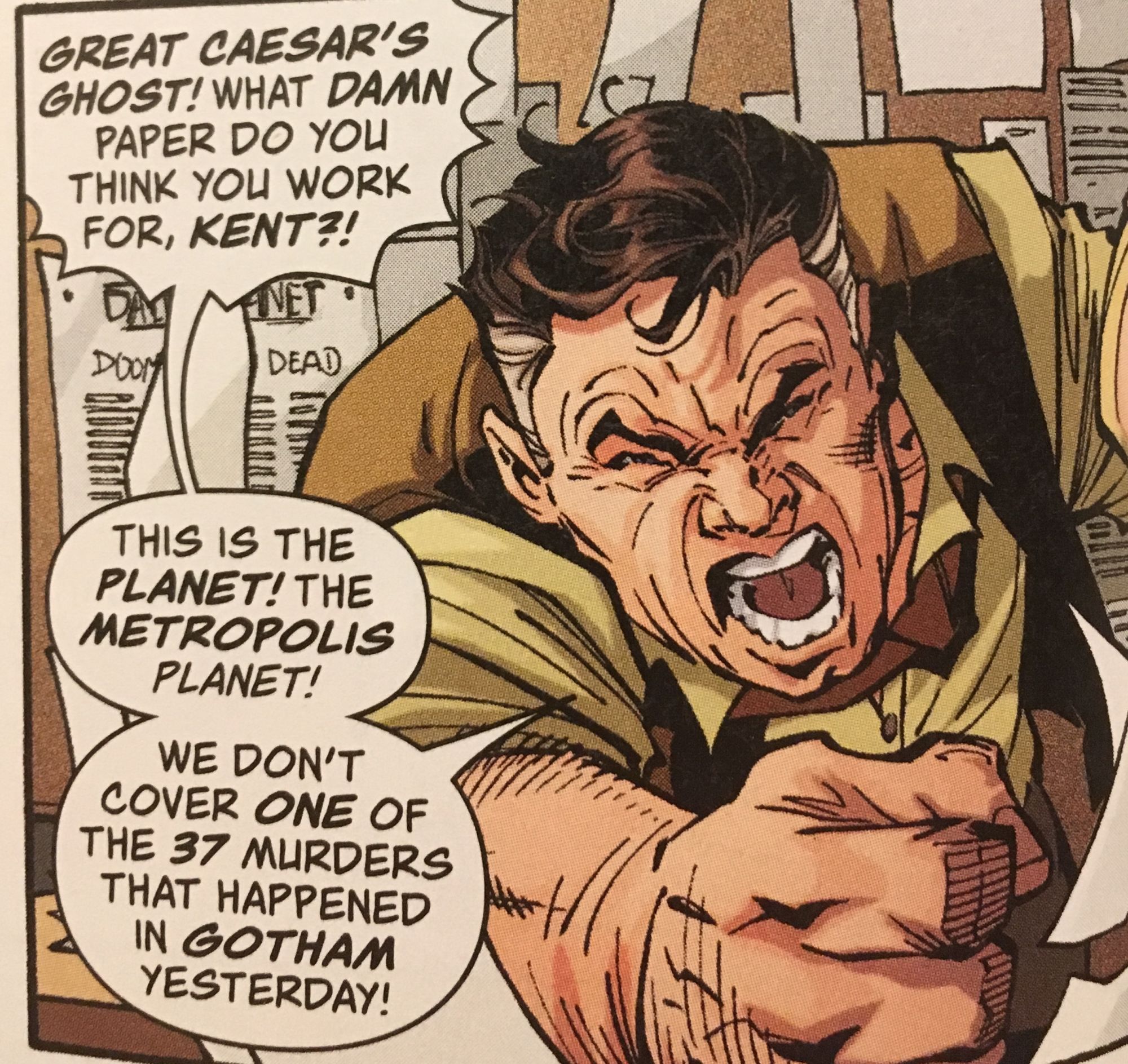 Nonetheless, Superman struggles whether to get involved. Perry White snaps at Clark's interest in reporting the case, citing the need to cover Metropolis crime, not distant Gotham. Hal Jordan is uncertain a particular lead can be tracked given a planet's misgivings about sharing tech secrets key to tracking the missing girl. Pa Kent models good parenting skills, letting Clark talk things out and nudging him towards a decision without choosing for him.