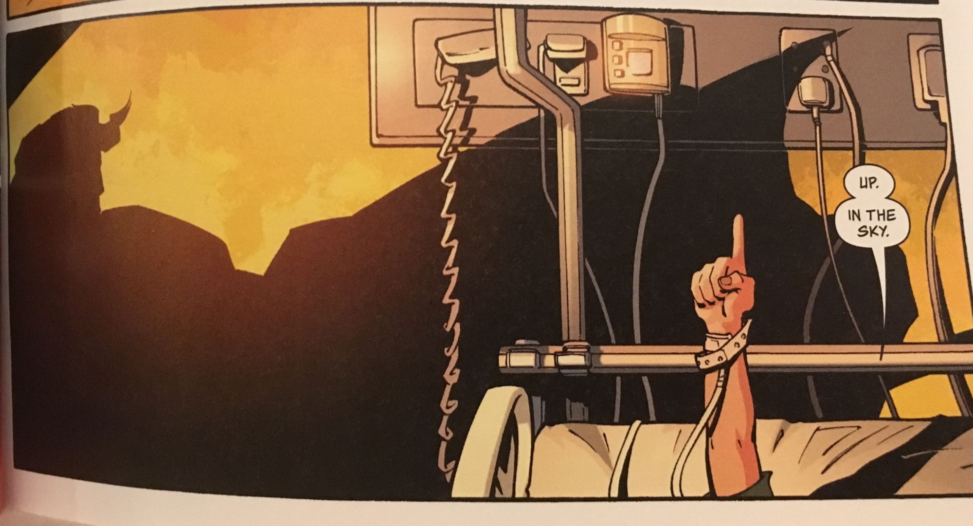 Despite misgivings aplenty about these Giants going to Walmart's nationwide and not into local comics shops, I appreciate King's approach to this hoped-for mass national audience. He brings us a first chapter of "Up in the Sky" with a balance of welcoming newcomers as well as giving us old timers a chance to see our old friend before we go buy tube socks and other sundries elsewhere in the store.