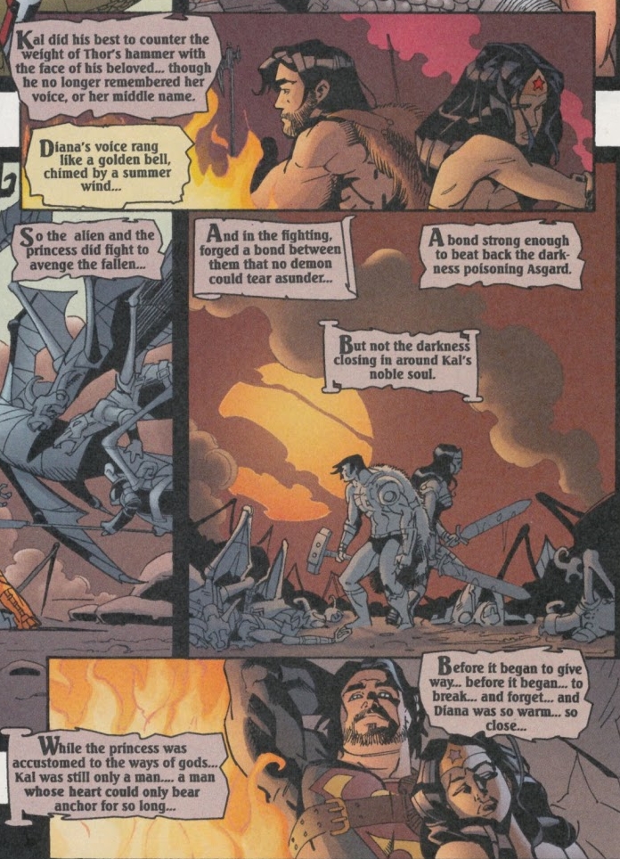 Wonder Woman guest-stars in a thrilling issue! Although the truth about the so-called "Mrs. Superman" has been revealed, the public still wonders about the Man of Steel's relationship with Wonder Woman. So what happens when both heroes find themselves exiled in the land of Valhalla for a thousand years? Will they give in to romantic temptation? Or will a multitude of demons kill them first?