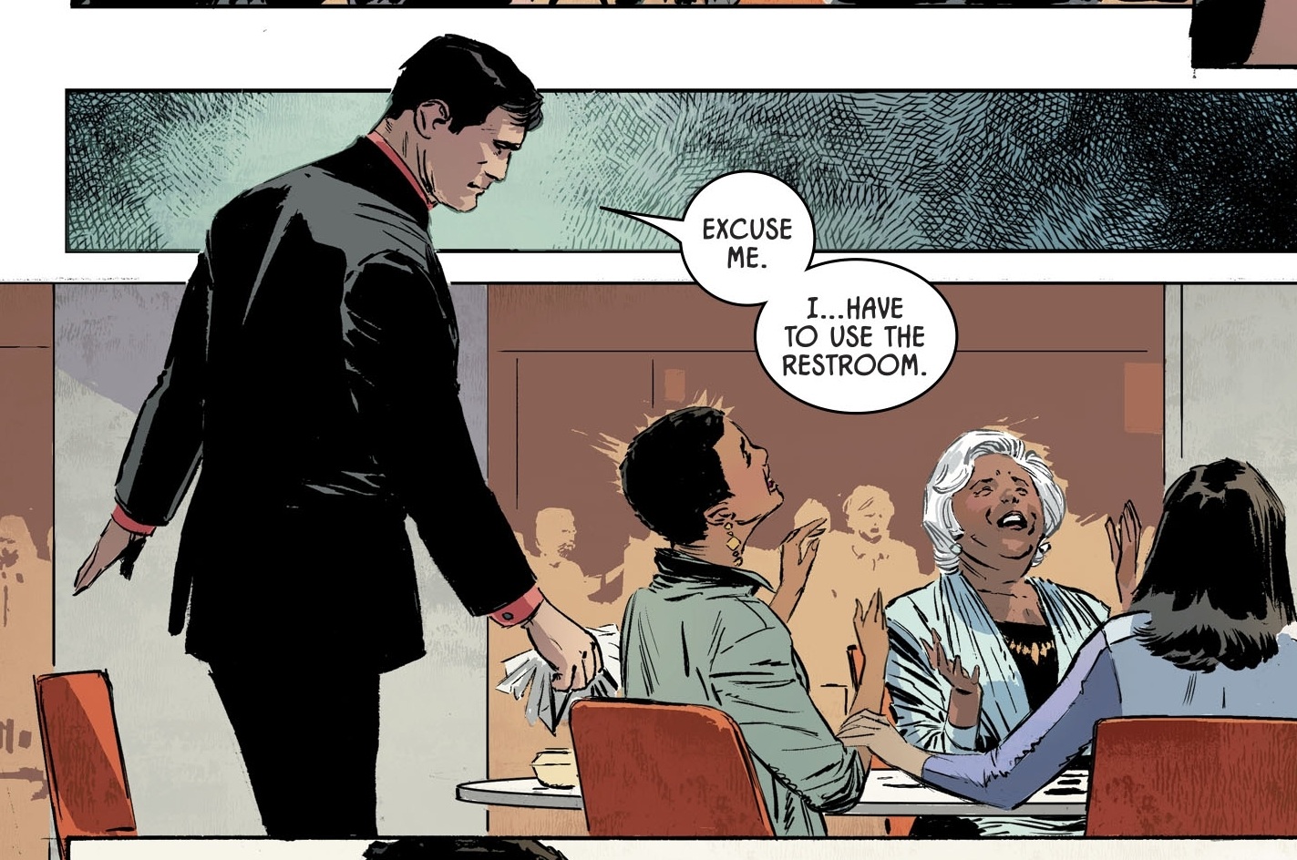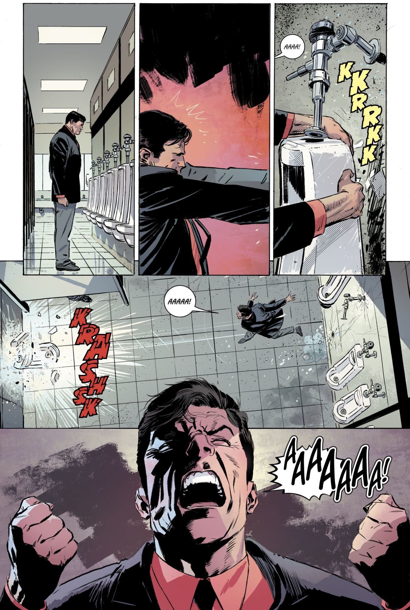 No wonder Bruce Wayne hates urinals so. They are consistently reminding him of the time he suddenly had no need for one.