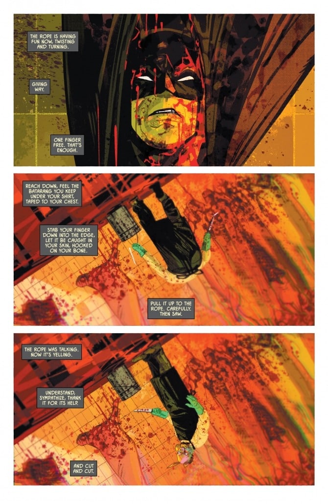 And wouldn't you know it, Batman is tied up by Professor Pyg and has to be an escape-artist.