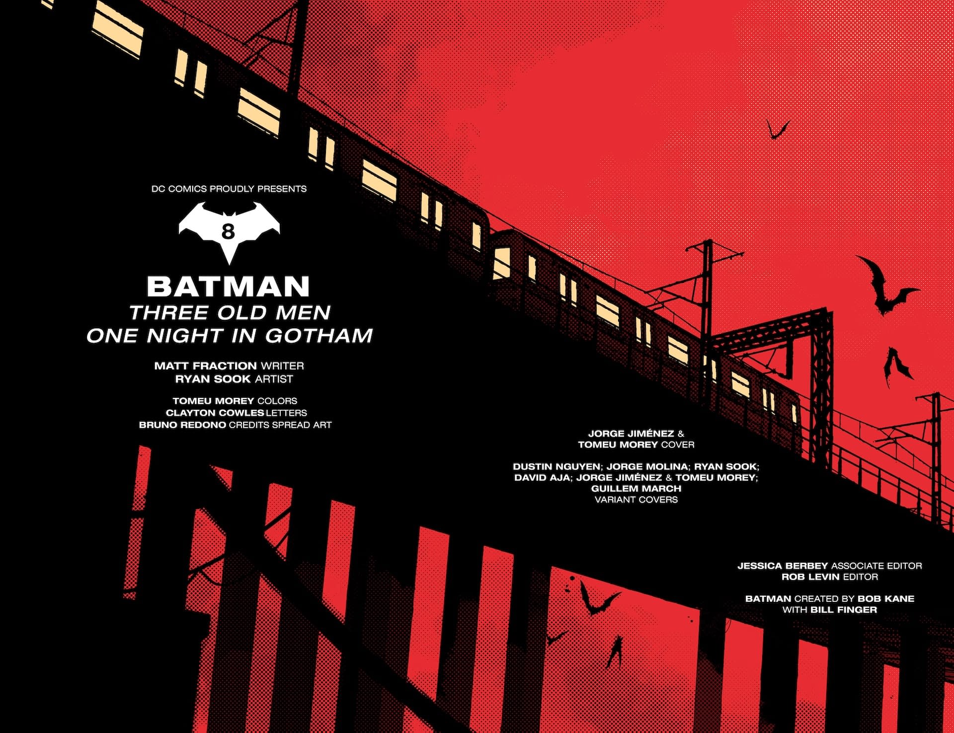 - Interior preview page from 0226DC0057 Batman #8 Jorge Jimenez Cover, by (W) Matt Fraction (A) Ryan Sook (CA) Jorge Jimenez, in stores Wednesday, April 1, 2026 from DC Comics